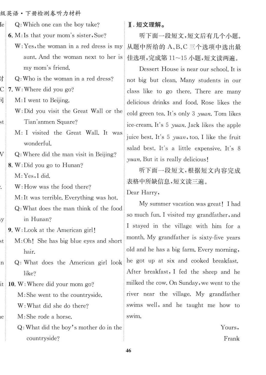注:目前有些书本章节名称可能整理的还不是很完善,但都是按照顺序排列的,请同学们按照顺序仔细查找。练习册 2024年指南针课堂优化七年级英语下册人教版 答案主要是用来给同学们做完题方便对答案用的,请勿直接抄袭。