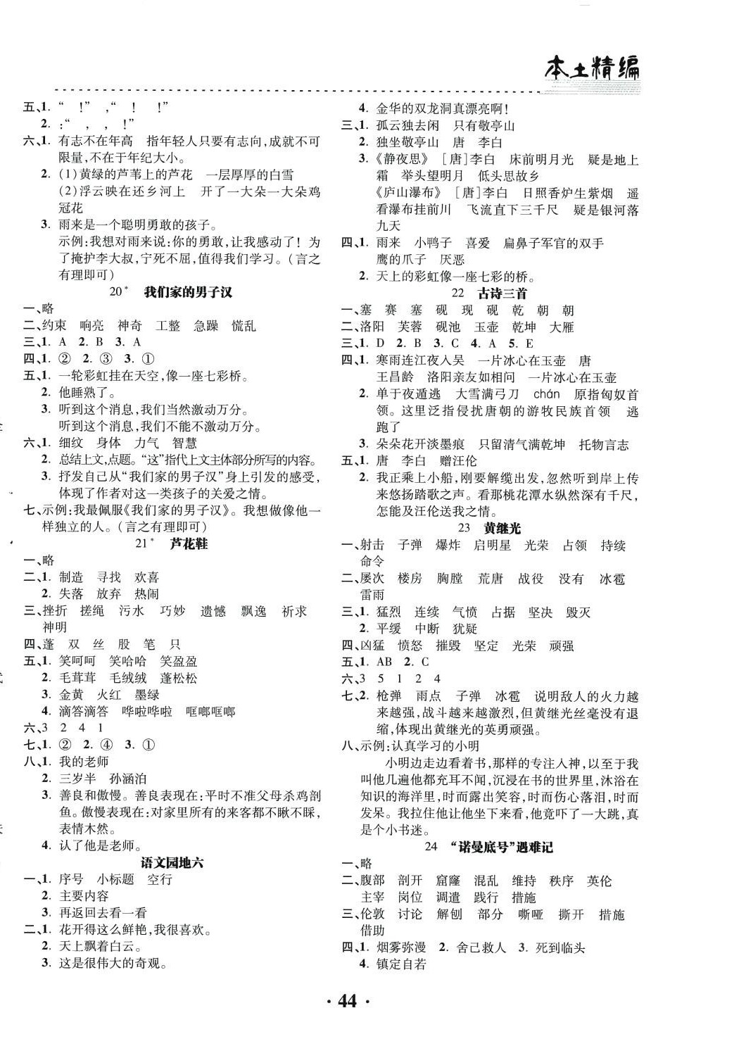 注:目前有些书本章节名称可能整理的还不是很完善,但都是按照顺序排列的,请同学们按照顺序仔细查找。练习册 2024年本土精编四年级语文下册人教版 答案主要是用来给同学们做完题方便对答案用的,请勿直接抄袭。