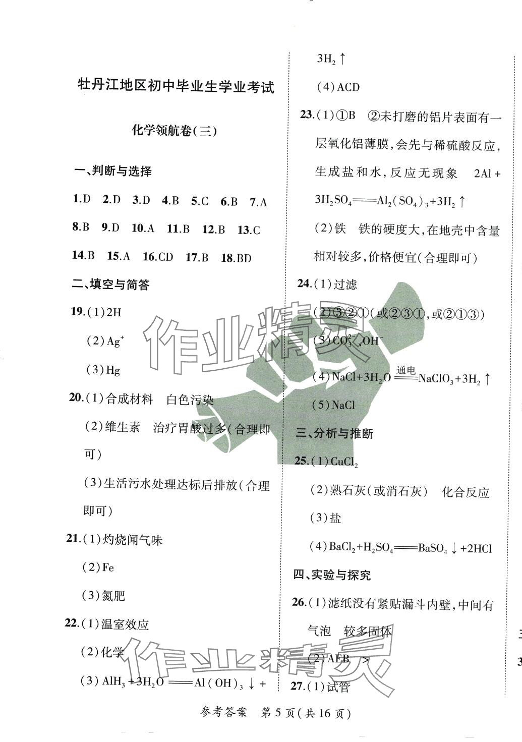 注:目前有些书本章节名称可能整理的还不是很完善,但都是按照顺序排列的,请同学们按照顺序仔细查找。练习册 2024年北大绿卡中考信息卷化学中考人教版牡丹江专版 答案主要是用来给同学们做完题方便对答案用的,请勿直接抄袭。