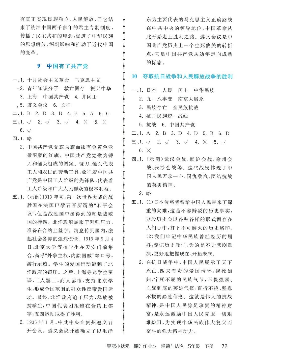 注:目前有些书本章节名称可能整理的还不是很完善,但都是按照顺序排列的,请同学们按照顺序仔细查找。练习册 2024年夺冠小状元课时作业本五年级道德与法治下册人教版 答案主要是用来给同学们做完题方便对答案用的,请勿直接抄袭。
