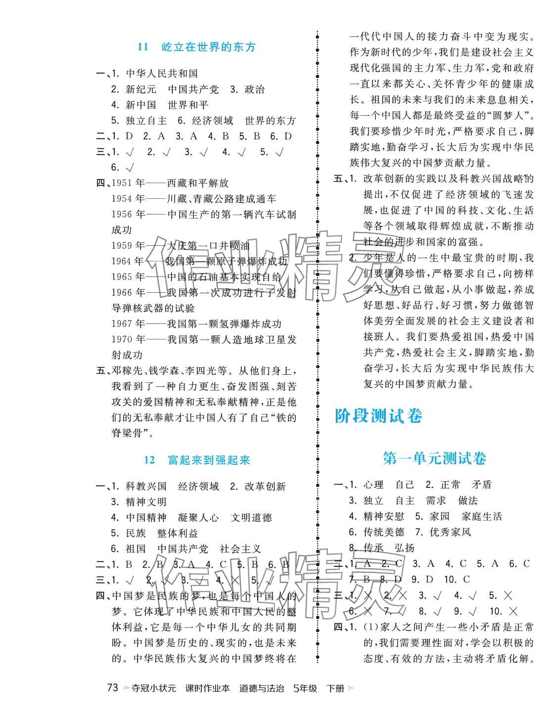 注:目前有些书本章节名称可能整理的还不是很完善,但都是按照顺序排列的,请同学们按照顺序仔细查找。练习册 2024年夺冠小状元课时作业本五年级道德与法治下册人教版 答案主要是用来给同学们做完题方便对答案用的,请勿直接抄袭。
