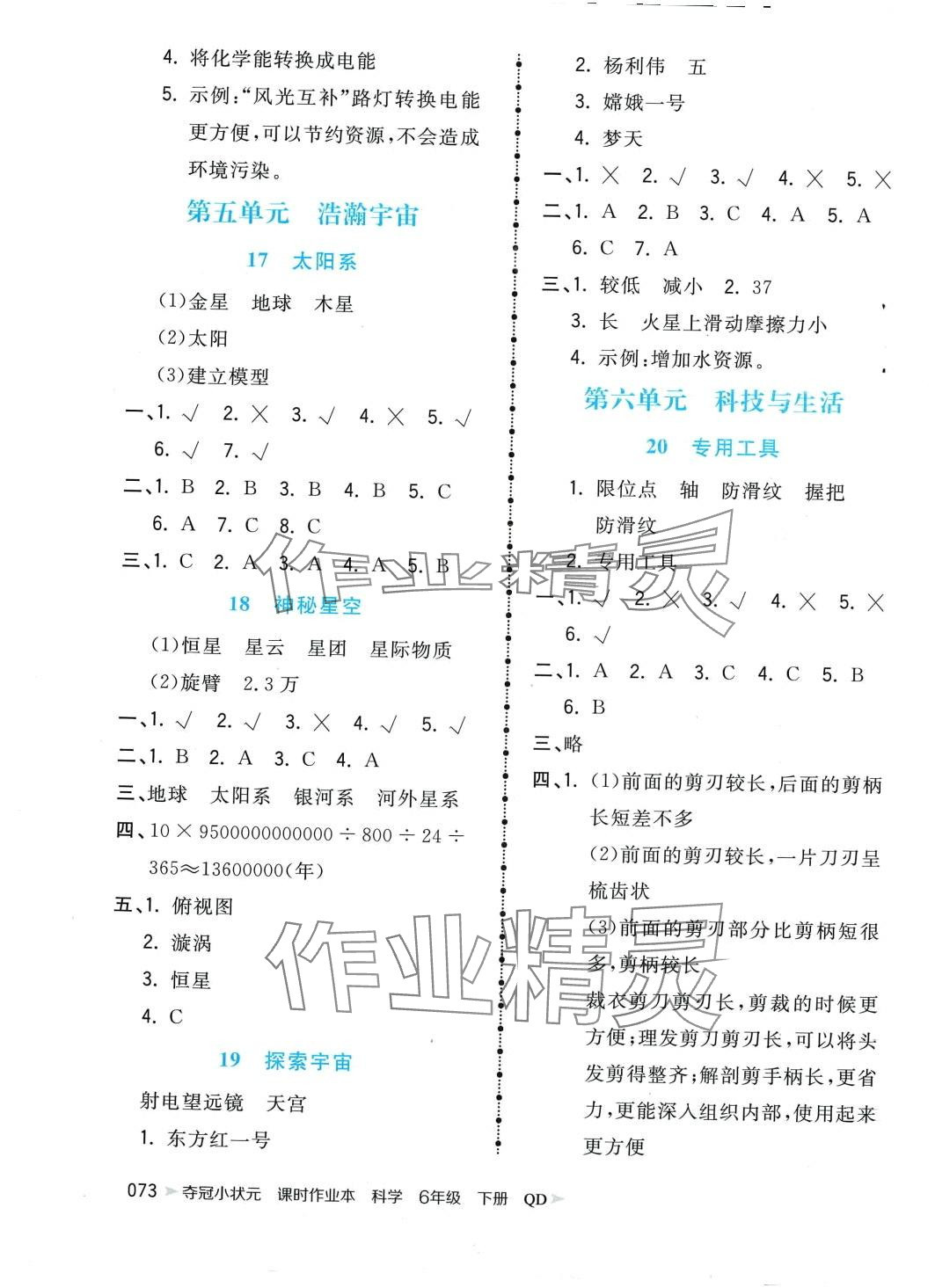 注:目前有些书本章节名称可能整理的还不是很完善,但都是按照顺序排列的,请同学们按照顺序仔细查找。练习册 2024年夺冠小状元课时作业本六年级科学下册青岛版 答案主要是用来给同学们做完题方便对答案用的,请勿直接抄袭。