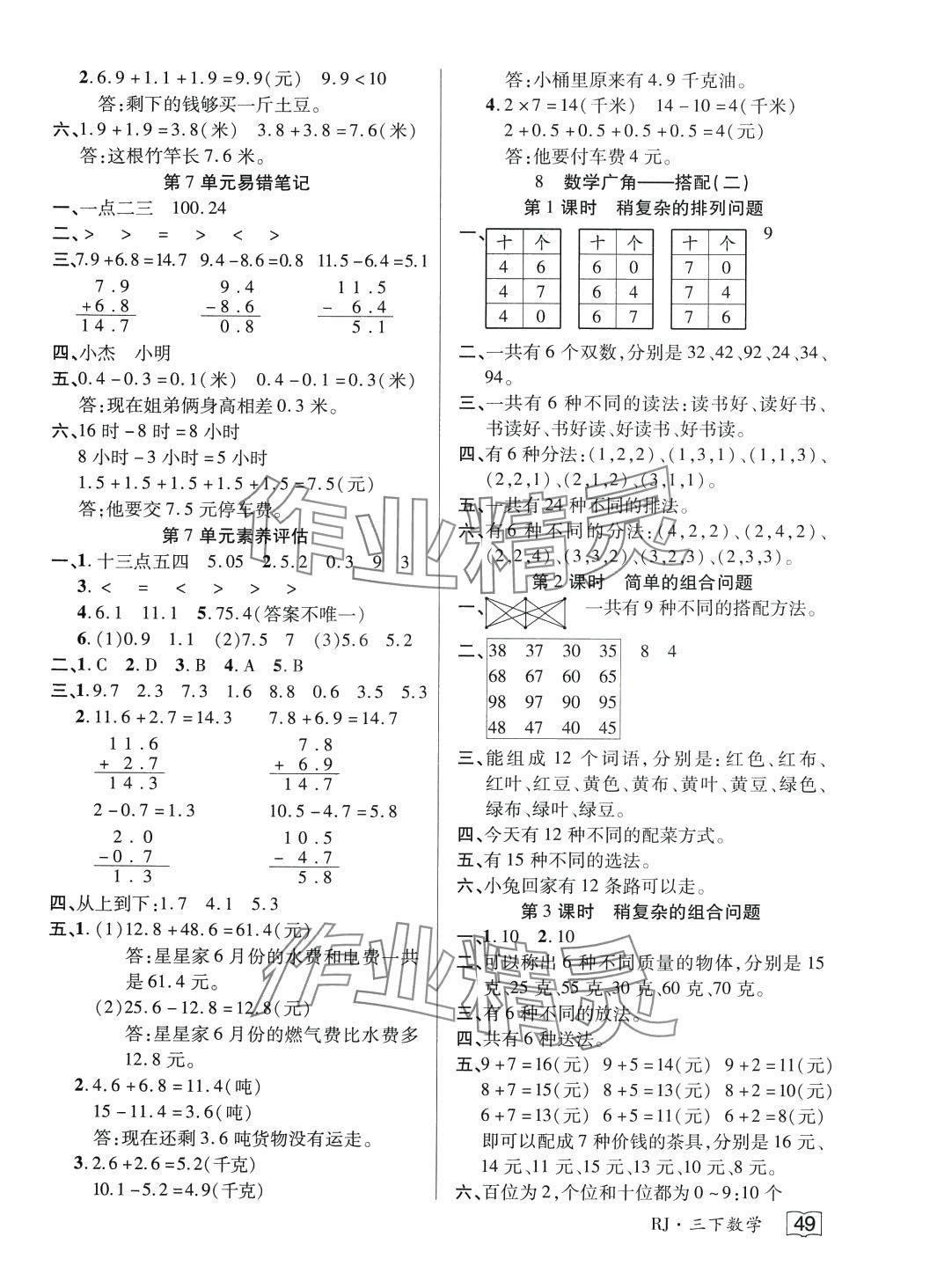 注:目前有些书本章节名称可能整理的还不是很完善,但都是按照顺序排列的,请同学们按照顺序仔细查找。练习册 2024年花儿与星星三年级数学下册人教版 答案主要是用来给同学们做完题方便对答案用的,请勿直接抄袭。
