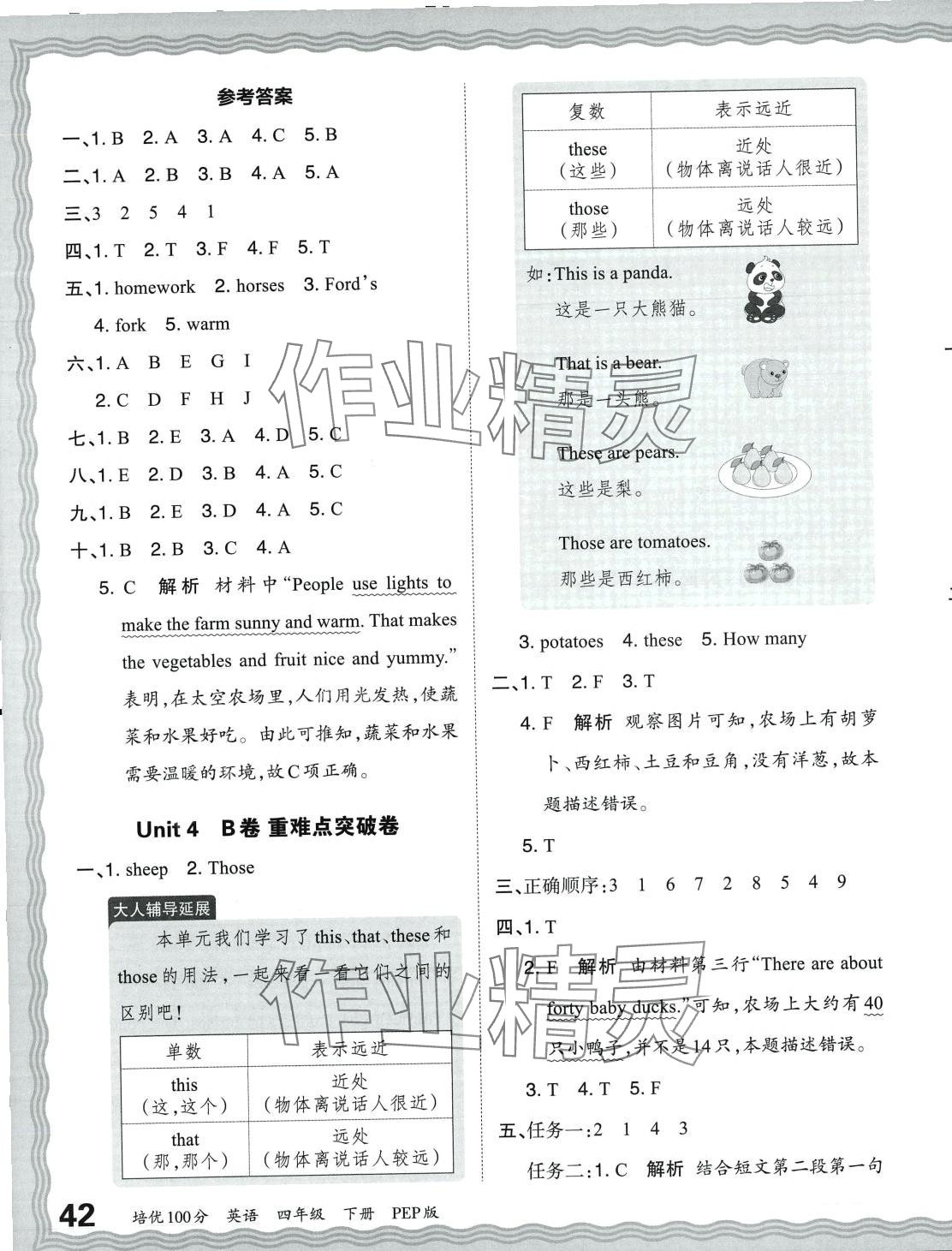 注:目前有些书本章节名称可能整理的还不是很完善,但都是按照顺序排列的,请同学们按照顺序仔细查找。练习册 2024年王朝霞培优100分四年级英语下册人教版 答案主要是用来给同学们做完题方便对答案用的,请勿直接抄袭。
