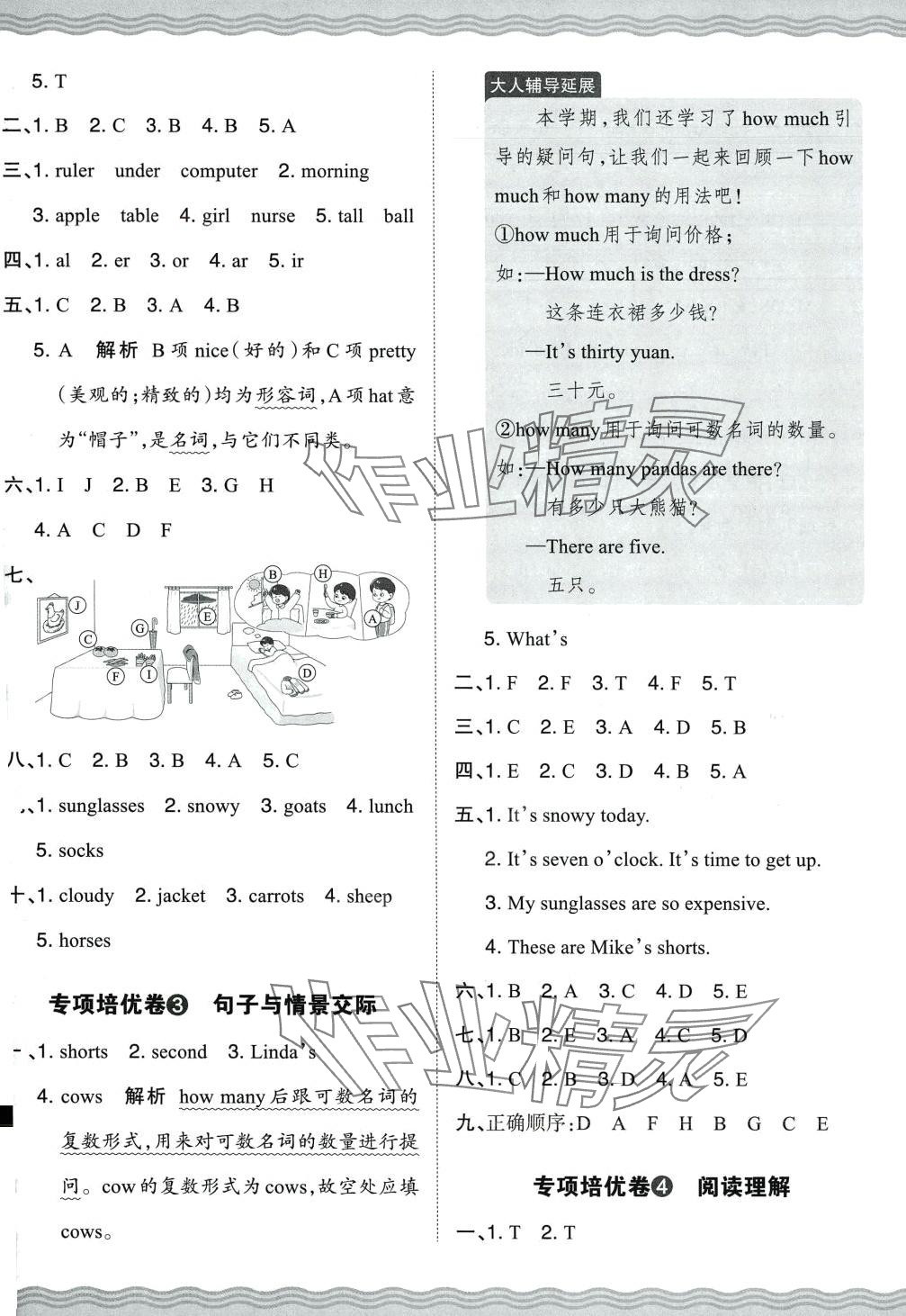 注:目前有些书本章节名称可能整理的还不是很完善,但都是按照顺序排列的,请同学们按照顺序仔细查找。练习册 2024年王朝霞培优100分四年级英语下册人教版 答案主要是用来给同学们做完题方便对答案用的,请勿直接抄袭。
