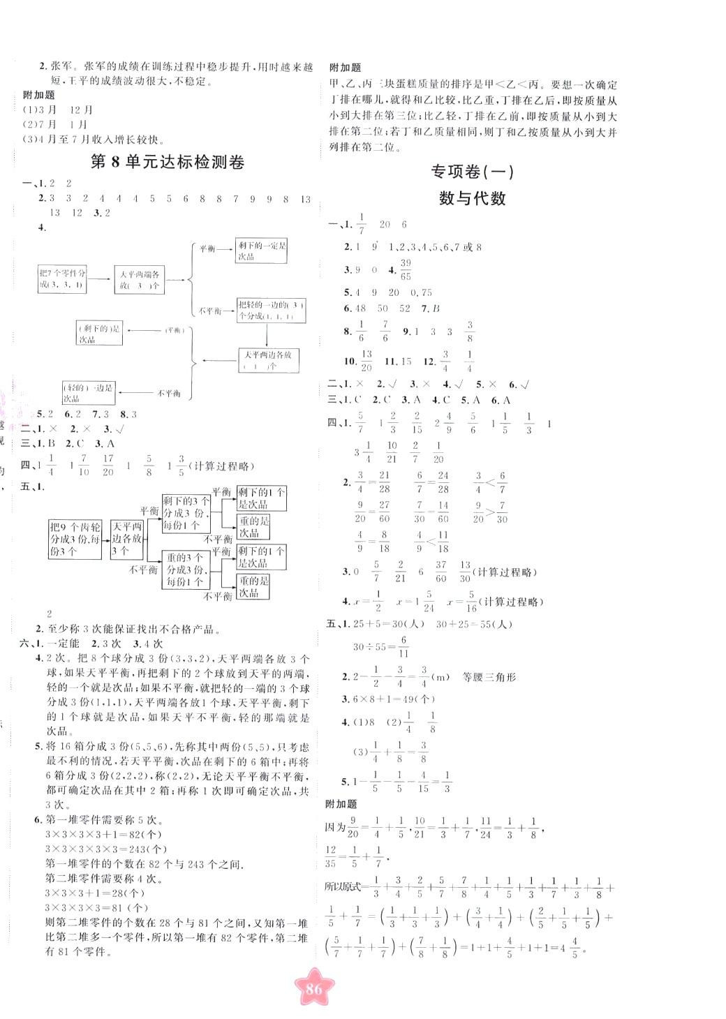 注:目前有些书本章节名称可能整理的还不是很完善,但都是按照顺序排列的,请同学们按照顺序仔细查找。练习册 2024年优加密卷五年级数学下册人教版P版 答案主要是用来给同学们做完题方便对答案用的,请勿直接抄袭。