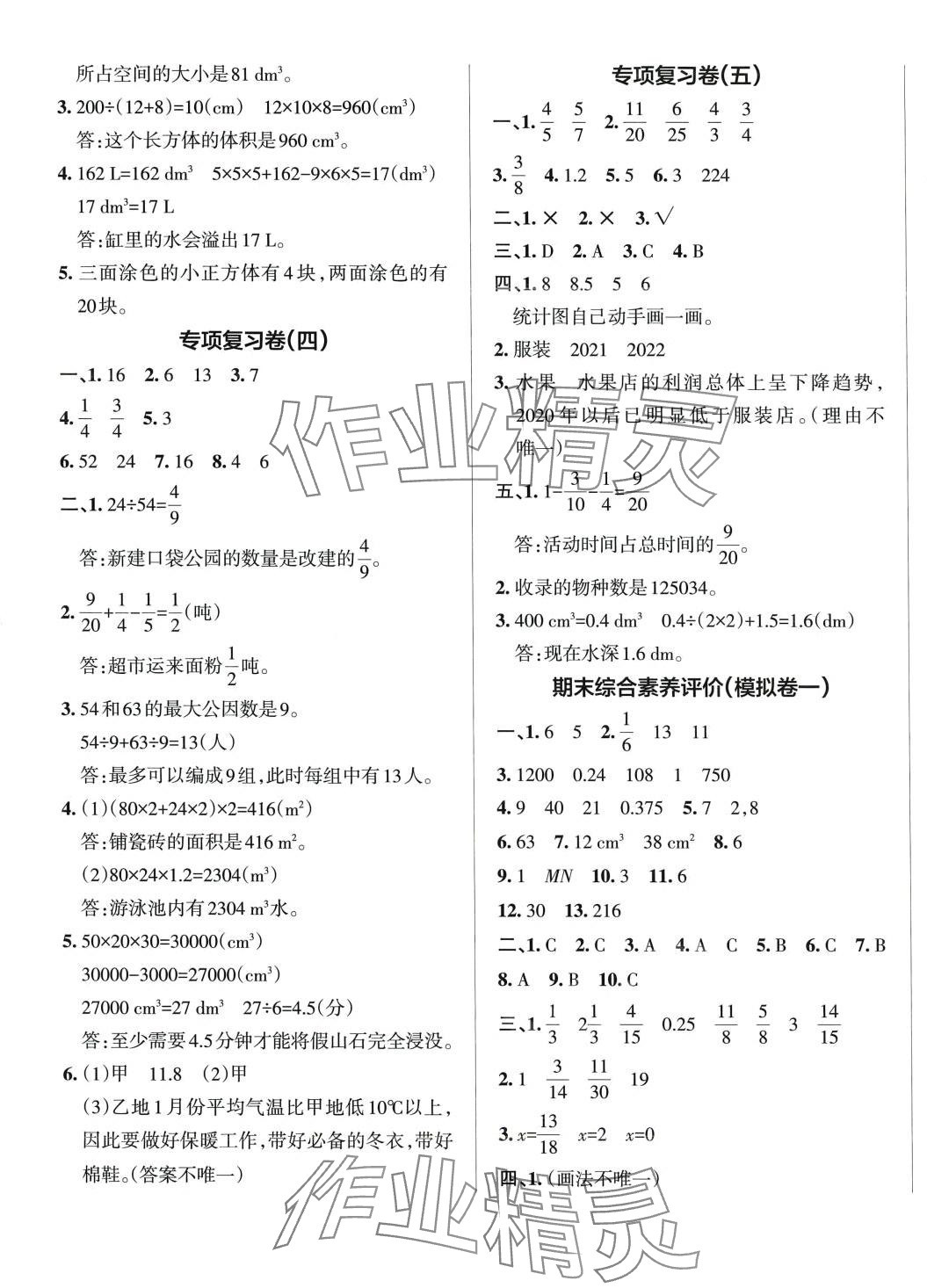 注:目前有些书本章节名称可能整理的还不是很完善,但都是按照顺序排列的,请同学们按照顺序仔细查找。练习册 2024年小学学霸单元期末标准卷五年级数学下册人教版 答案主要是用来给同学们做完题方便对答案用的,请勿直接抄袭。