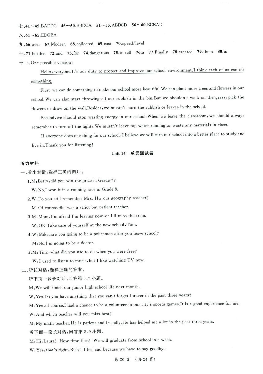 注:目前有些书本章节名称可能整理的还不是很完善,但都是按照顺序排列的,请同学们按照顺序仔细查找。练习册 2024年我的作业九年级英语下册 答案主要是用来给同学们做完题方便对答案用的,请勿直接抄袭。