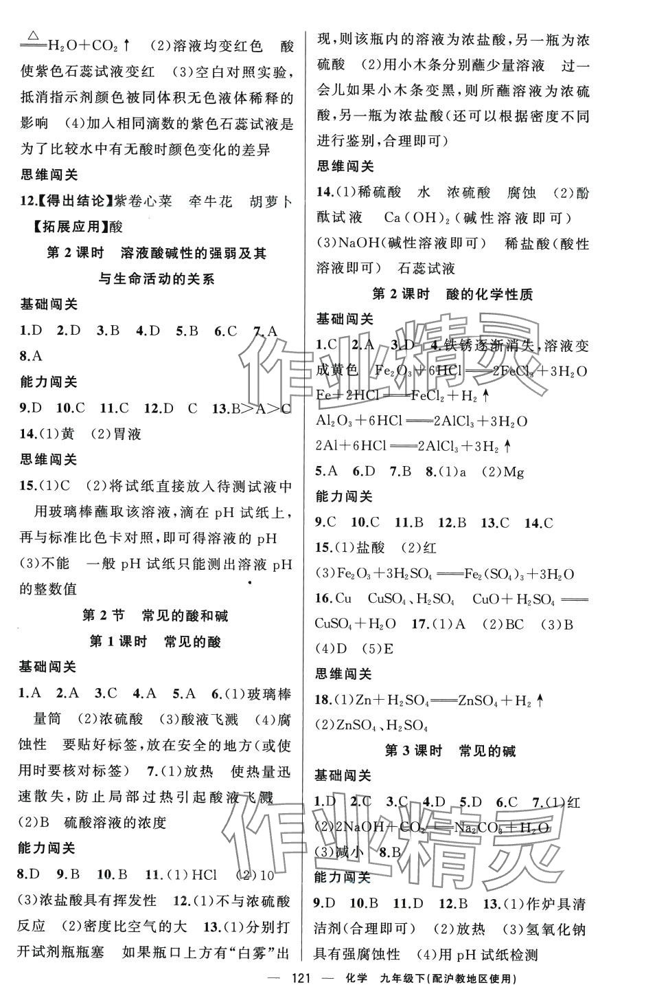 注:目前有些书本章节名称可能整理的还不是很完善,但都是按照顺序排列的,请同学们按照顺序仔细查找。练习册 2024年黄冈100分闯关九年级化学下册沪教版 答案主要是用来给同学们做完题方便对答案用的,请勿直接抄袭。