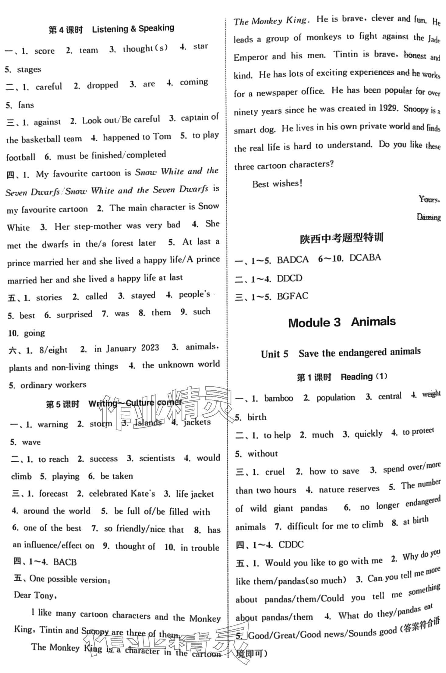 注:目前有些书本章节名称可能整理的还不是很完善,但都是按照顺序排列的,请同学们按照顺序仔细查找。练习册 2024年通城学典课时作业本八年级英语下册沪教版陕西专版 答案主要是用来给同学们做完题方便对答案用的,请勿直接抄袭。