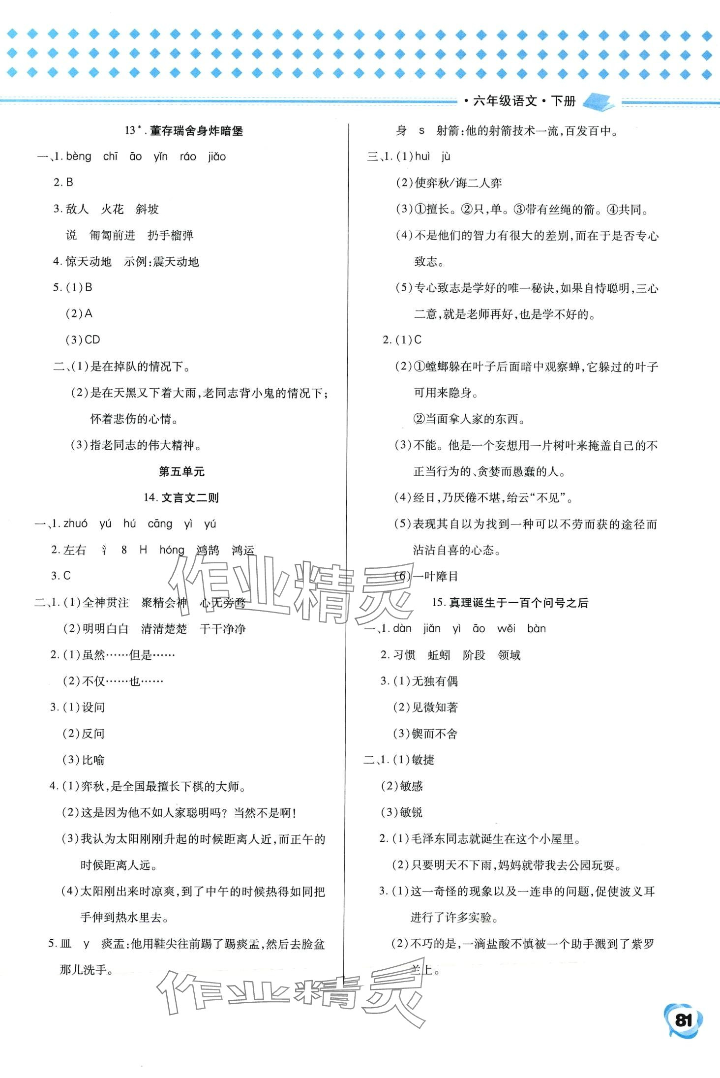 注:目前有些书本章节名称可能整理的还不是很完善,但都是按照顺序排列的,请同学们按照顺序仔细查找。练习册 2024年探究学案六年级语文下册人教版 答案主要是用来给同学们做完题方便对答案用的,请勿直接抄袭。