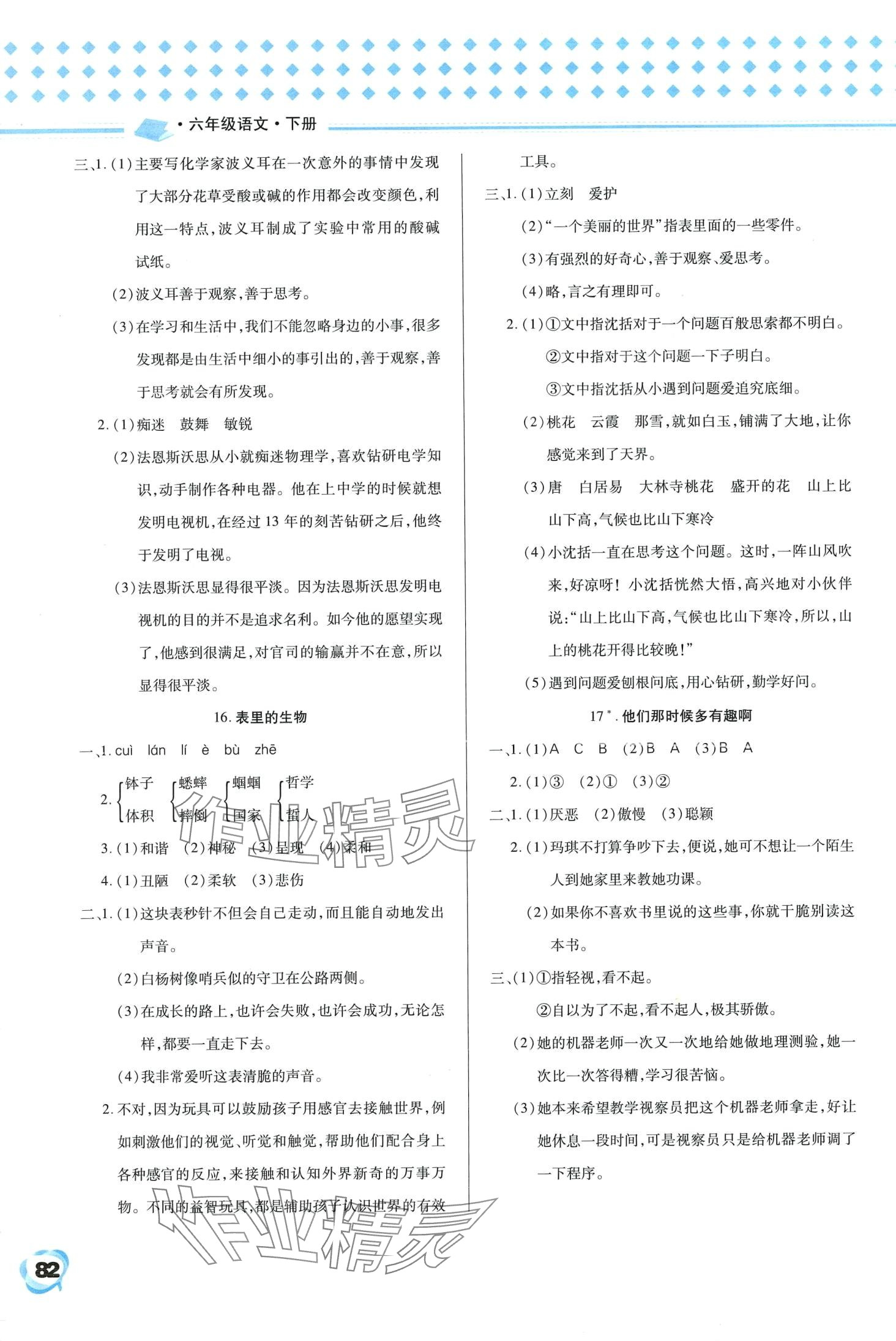 注:目前有些书本章节名称可能整理的还不是很完善,但都是按照顺序排列的,请同学们按照顺序仔细查找。练习册 2024年探究学案六年级语文下册人教版 答案主要是用来给同学们做完题方便对答案用的,请勿直接抄袭。