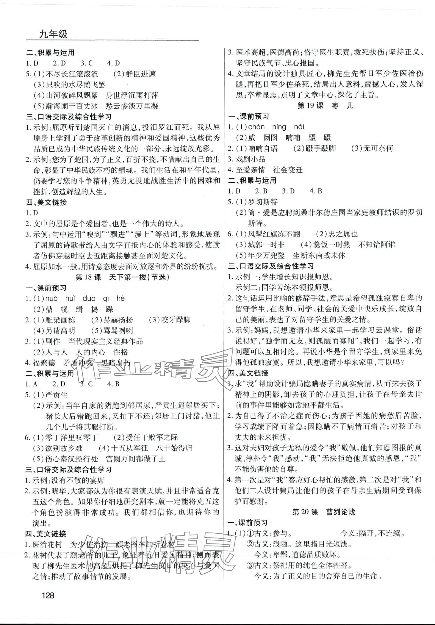 注:目前有些书本章节名称可能整理的还不是很完善,但都是按照顺序排列的,请同学们按照顺序仔细查找。练习册 2024年全练练测考九年级语文下册人教版 答案主要是用来给同学们做完题方便对答案用的,请勿直接抄袭。