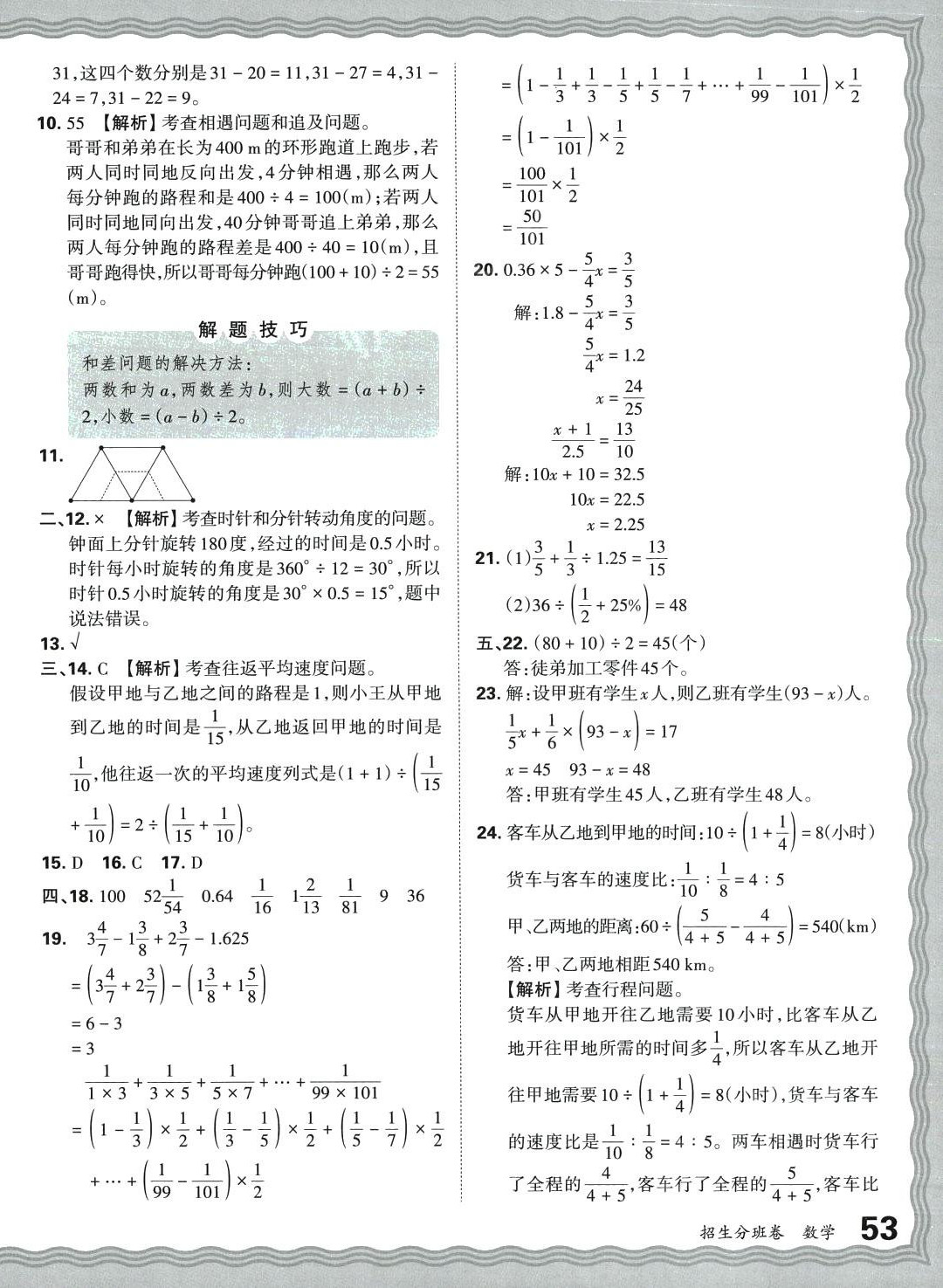 《2024年王朝霞小升初重点校毕业升学及招生分班数学》