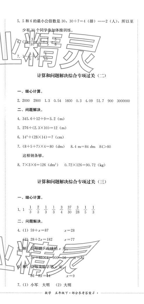 注:目前有些书本章节名称可能整理的还不是很完善,但都是按照顺序排列的,请同学们按照顺序仔细查找。练习册 2024年精练过关四川教育出版社五年级数学下册西师大版 答案主要是用来给同学们做完题方便对答案用的,请勿直接抄袭。