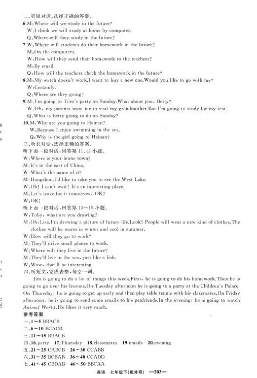 注:目前有些书本章节名称可能整理的还不是很完善,但都是按照顺序排列的,请同学们按照顺序仔细查找。练习册 2024年四清导航七年级英语下册外研版 答案主要是用来给同学们做完题方便对答案用的,请勿直接抄袭。
