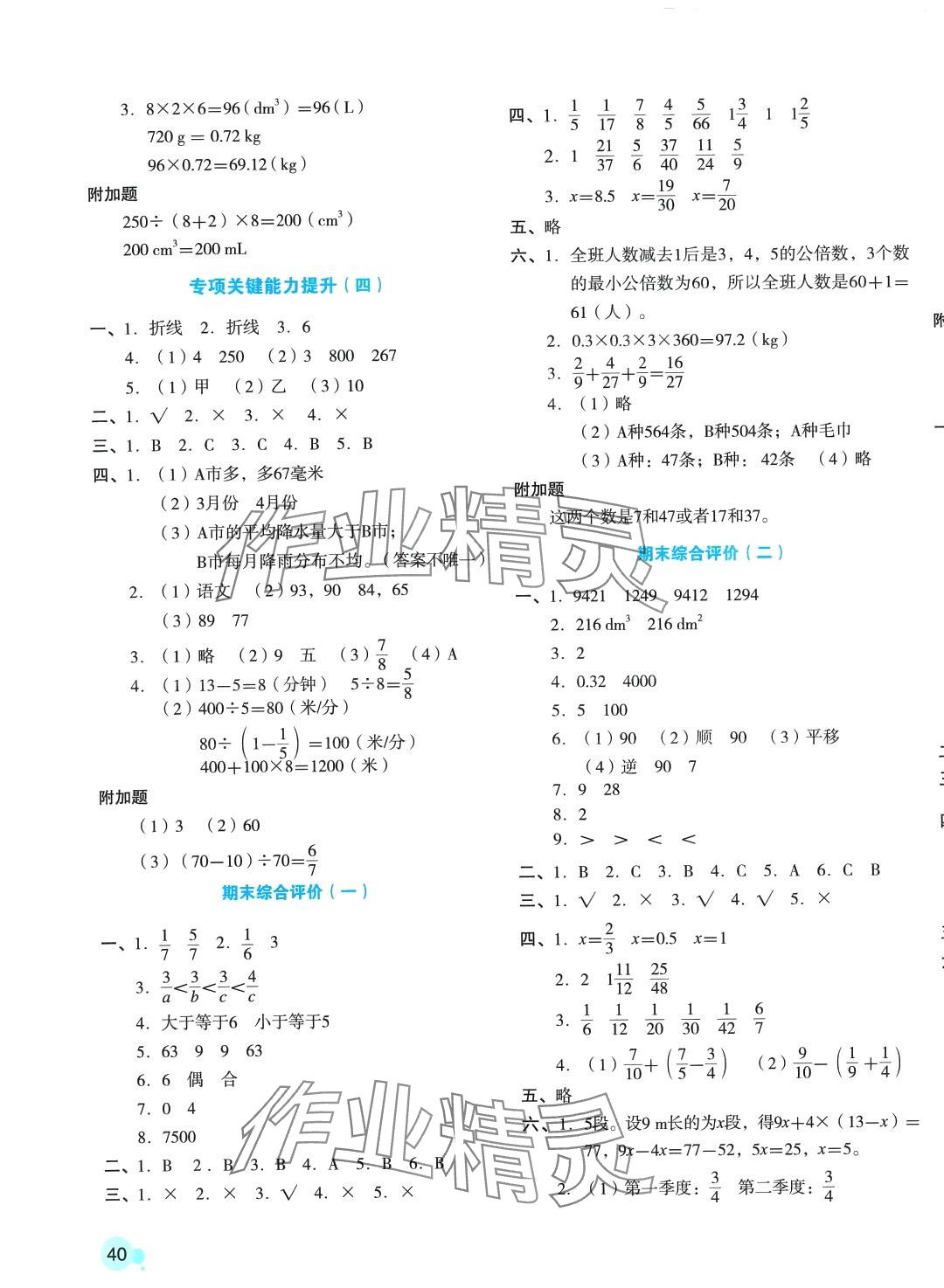 注:目前有些书本章节名称可能整理的还不是很完善,但都是按照顺序排列的,请同学们按照顺序仔细查找。练习册 2024年学科素养与能力提升五年级数学下册人教版 答案主要是用来给同学们做完题方便对答案用的,请勿直接抄袭。