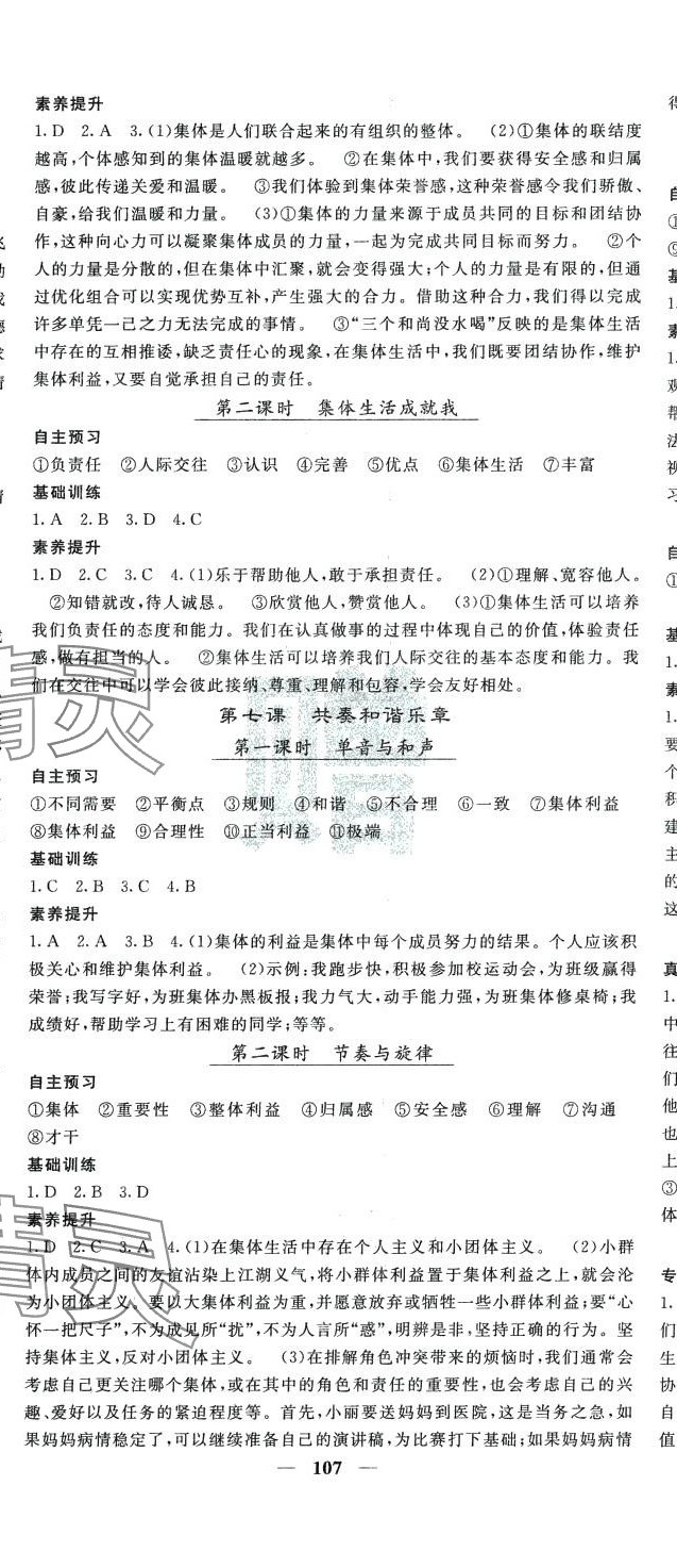 注:目前有些书本章节名称可能整理的还不是很完善,但都是按照顺序排列的,请同学们按照顺序仔细查找。练习册 2024年名校课堂内外七年级道德与法治下册人教版 答案主要是用来给同学们做完题方便对答案用的,请勿直接抄袭。