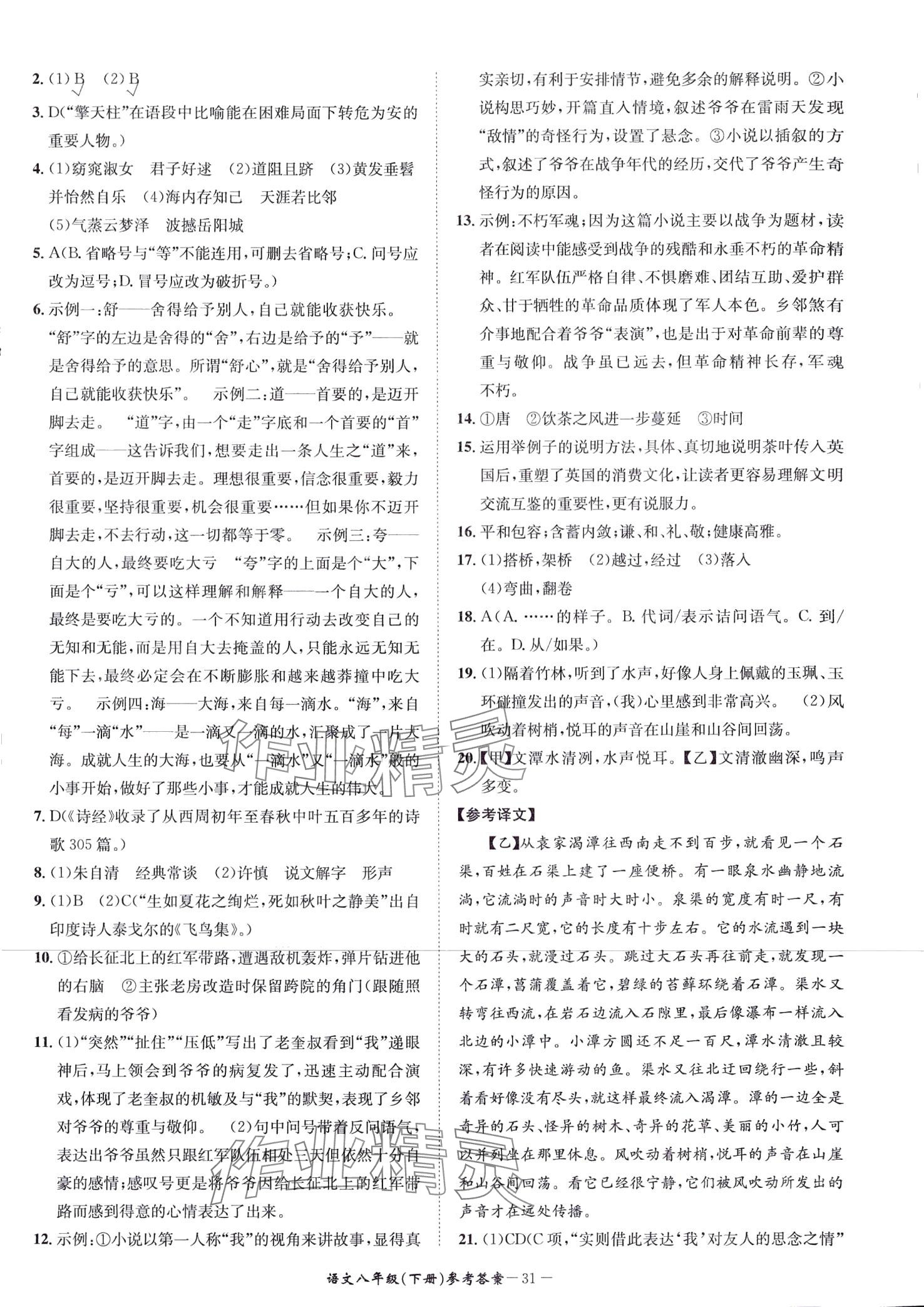 注:目前有些书本章节名称可能整理的还不是很完善,但都是按照顺序排列的,请同学们按照顺序仔细查找。练习册 2024年名师金典BFB初中课时优化八年级语文下册人教版 答案主要是用来给同学们做完题方便对答案用的,请勿直接抄袭。