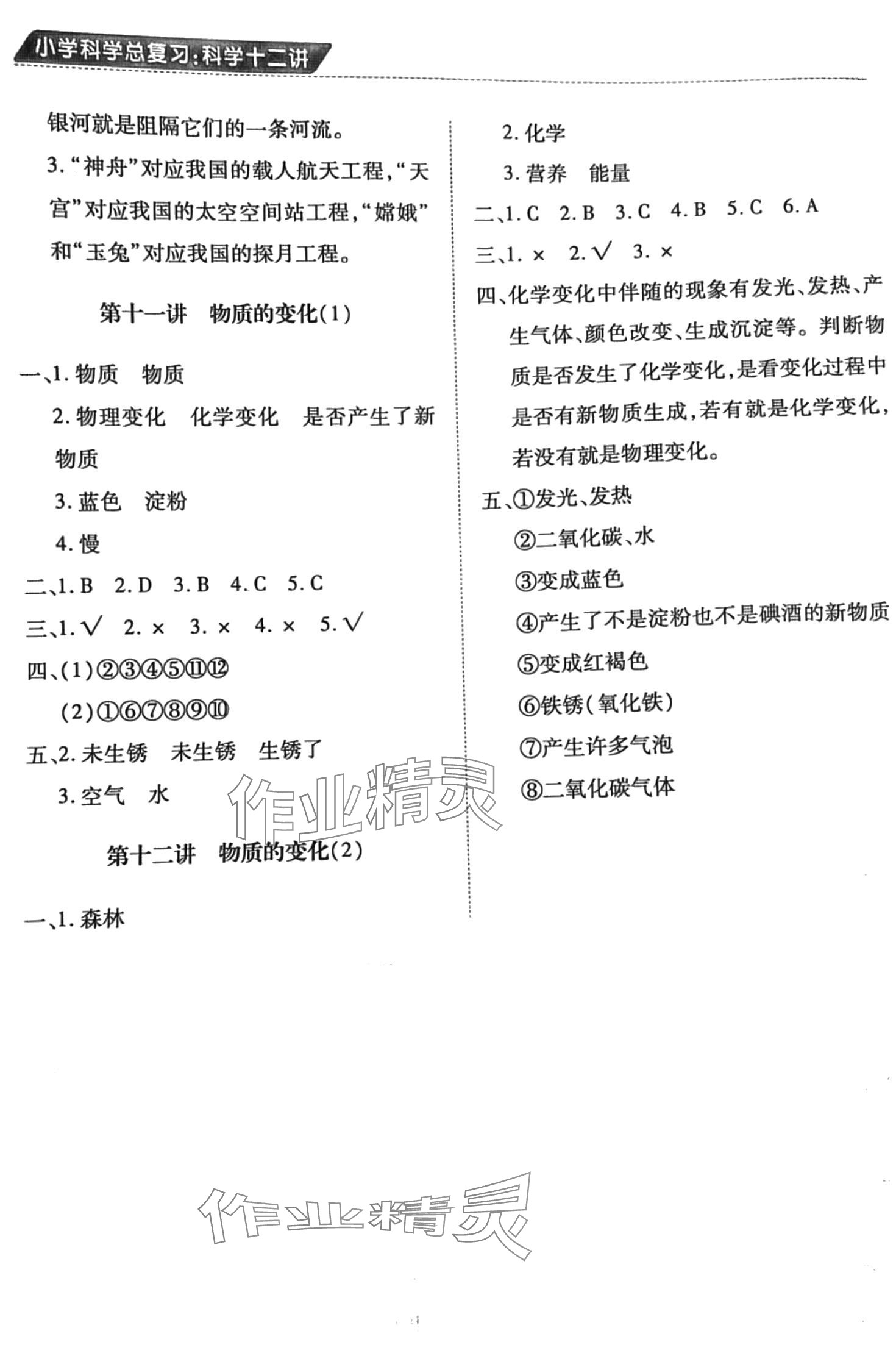 注:目前有些书本章节名称可能整理的还不是很完善,但都是按照顺序排列的,请同学们按照顺序仔细查找。练习册 2024年小学科学总复习江西人民出版社教科版 答案主要是用来给同学们做完题方便对答案用的,请勿直接抄袭。