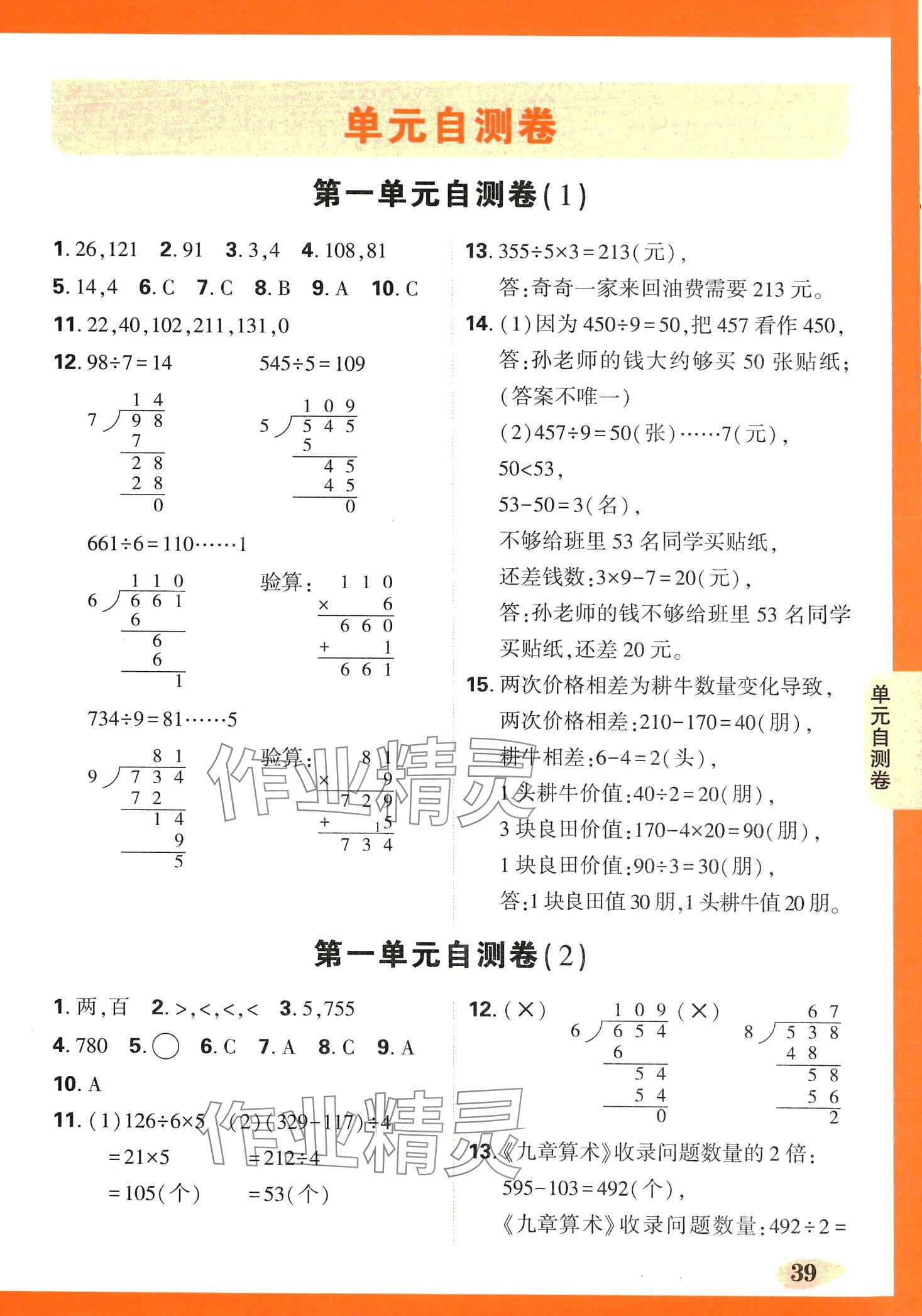 注:目前有些书本章节名称可能整理的还不是很完善,但都是按照顺序排列的,请同学们按照顺序仔细查找。练习册 2024年情境题提思维三年级数学下册北师大版 答案主要是用来给同学们做完题方便对答案用的,请勿直接抄袭。