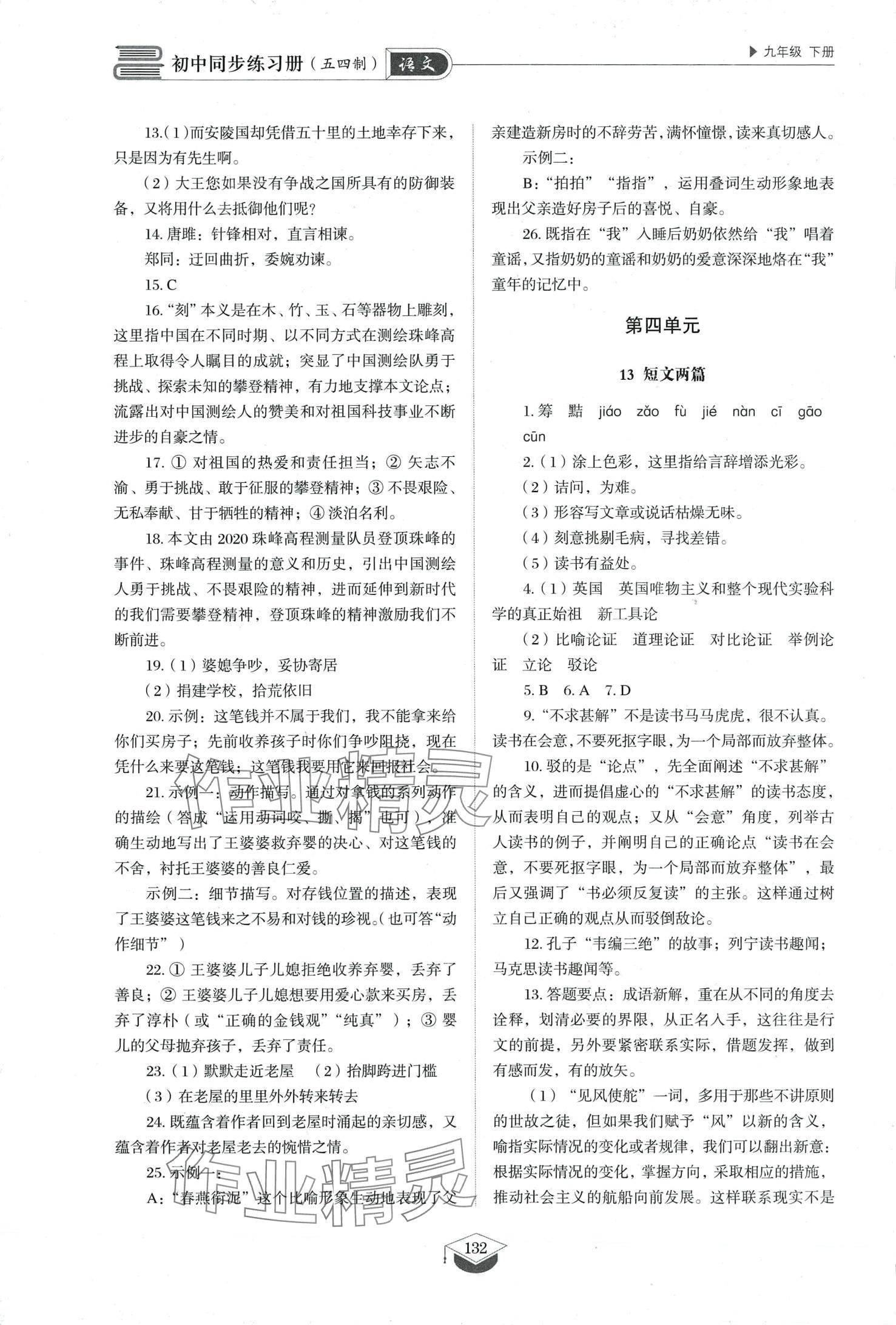 注:目前有些书本章节名称可能整理的还不是很完善,但都是按照顺序排列的,请同学们按照顺序仔细查找。练习册 2024年同步练习册山东教育出版社九年级语文下册人教版五四制 答案主要是用来给同学们做完题方便对答案用的,请勿直接抄袭。