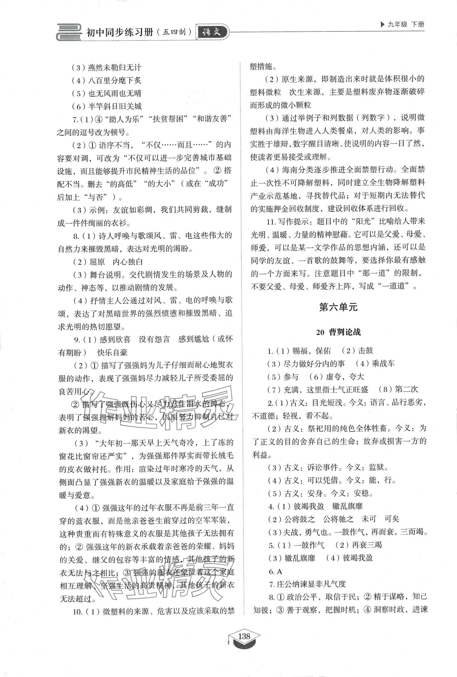 注:目前有些书本章节名称可能整理的还不是很完善,但都是按照顺序排列的,请同学们按照顺序仔细查找。练习册 2024年同步练习册山东教育出版社九年级语文下册人教版五四制 答案主要是用来给同学们做完题方便对答案用的,请勿直接抄袭。