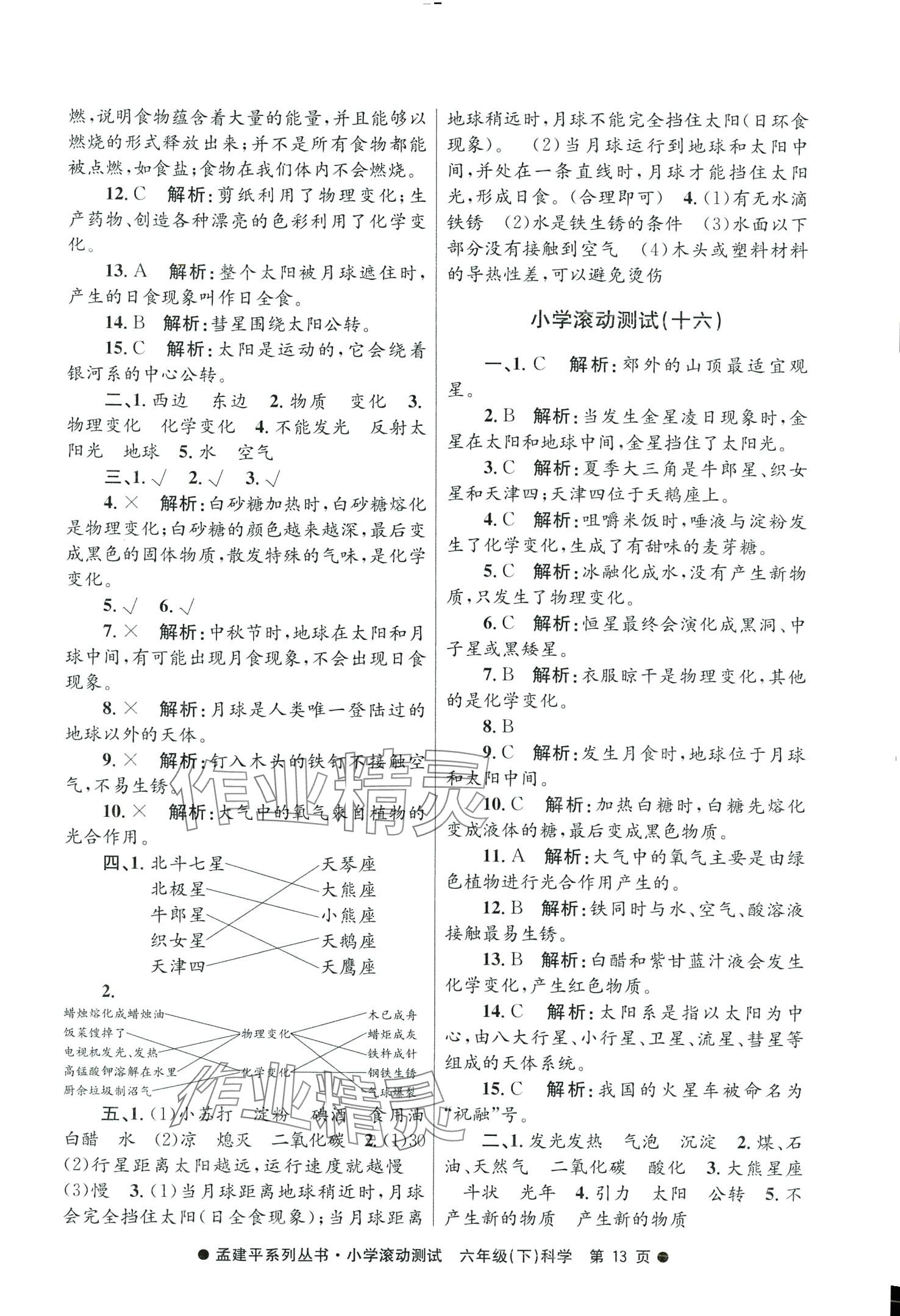 注:目前有些书本章节名称可能整理的还不是很完善,但都是按照顺序排列的,请同学们按照顺序仔细查找。练习册 2024年孟建平小学滚动测试六年级科学下册教科版 答案主要是用来给同学们做完题方便对答案用的,请勿直接抄袭。