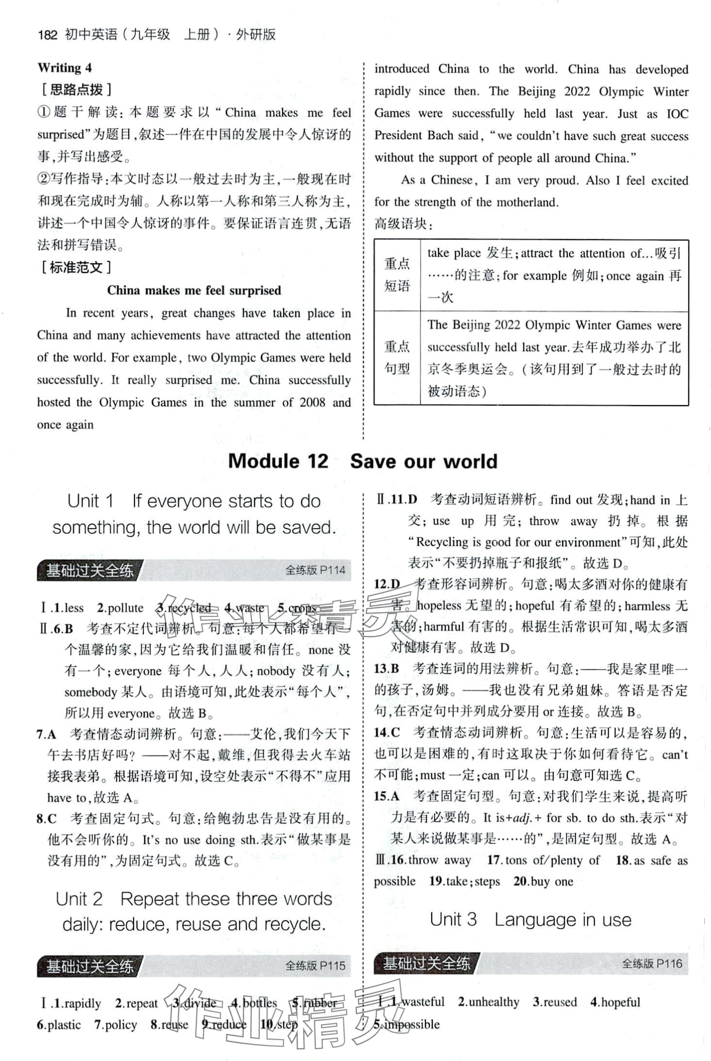 注:目前有些书本章节名称可能整理的还不是很完善,但都是按照顺序排列的,请同学们按照顺序仔细查找。练习册 2024年5年中考3年模拟九年级英语上册外研版 答案主要是用来给同学们做完题方便对答案用的,请勿直接抄袭。