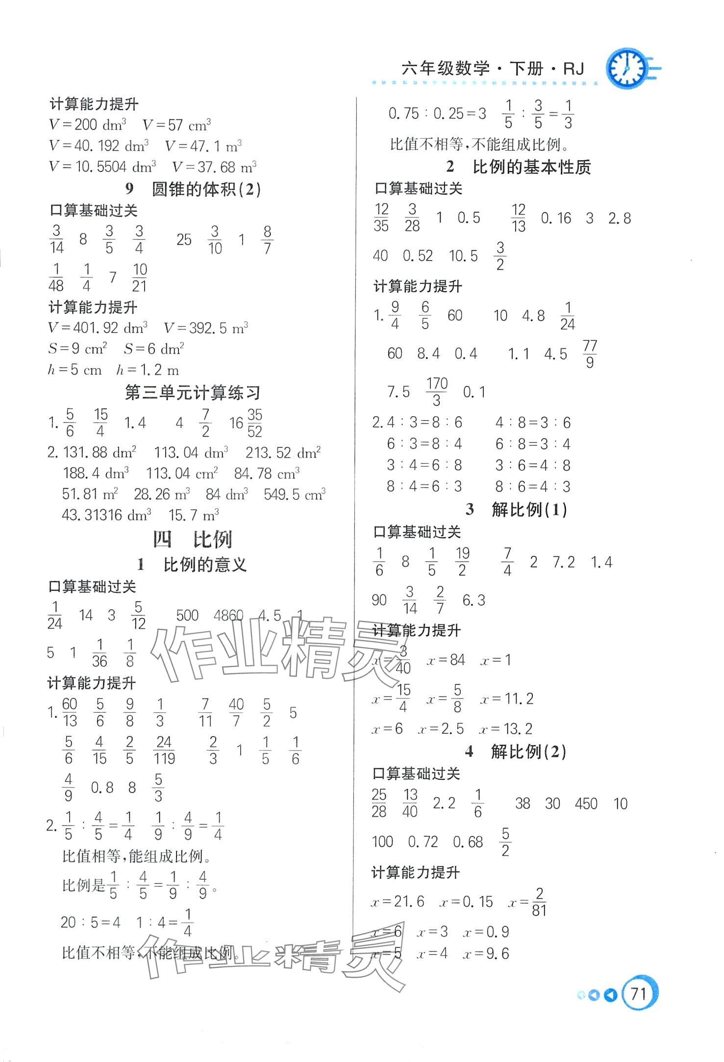 注:目前有些书本章节名称可能整理的还不是很完善,但都是按照顺序排列的,请同学们按照顺序仔细查找。练习册 2024年口算心算快速算六年级数学下册人教版 答案主要是用来给同学们做完题方便对答案用的,请勿直接抄袭。