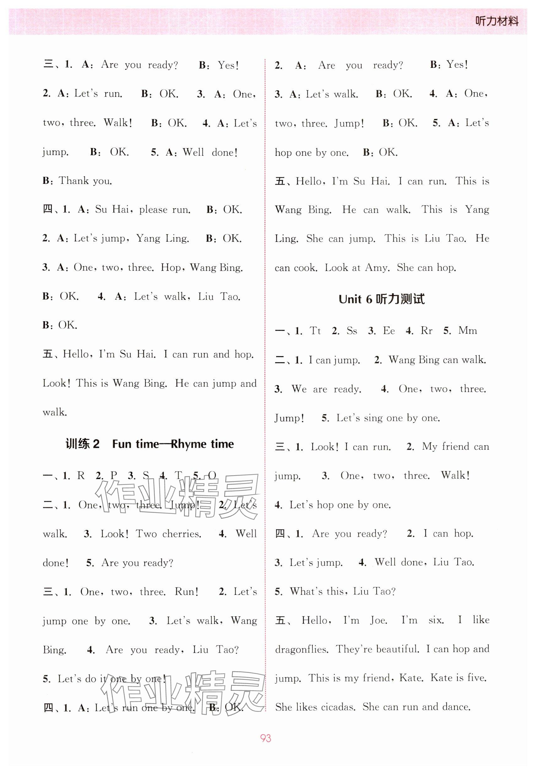 注:目前有些书本章节名称可能整理的还不是很完善,但都是按照顺序排列的,请同学们按照顺序仔细查找。练习册 2024年通城学典小学英语听力能手一年级下册译林版 答案主要是用来给同学们做完题方便对答案用的,请勿直接抄袭。