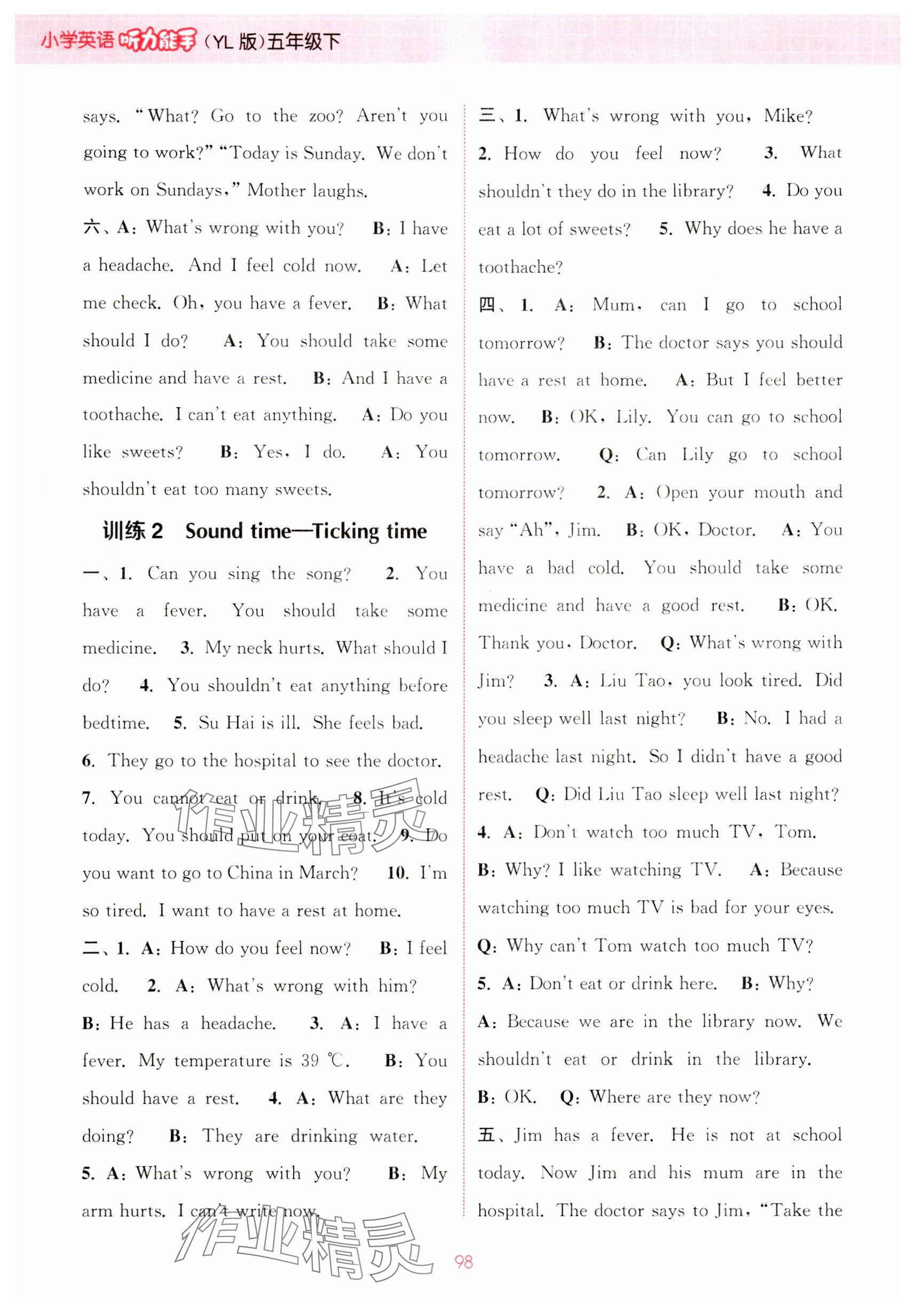 注:目前有些书本章节名称可能整理的还不是很完善,但都是按照顺序排列的,请同学们按照顺序仔细查找。练习册 2024年通城学典小学英语听力能手五年级下册译林版 答案主要是用来给同学们做完题方便对答案用的,请勿直接抄袭。