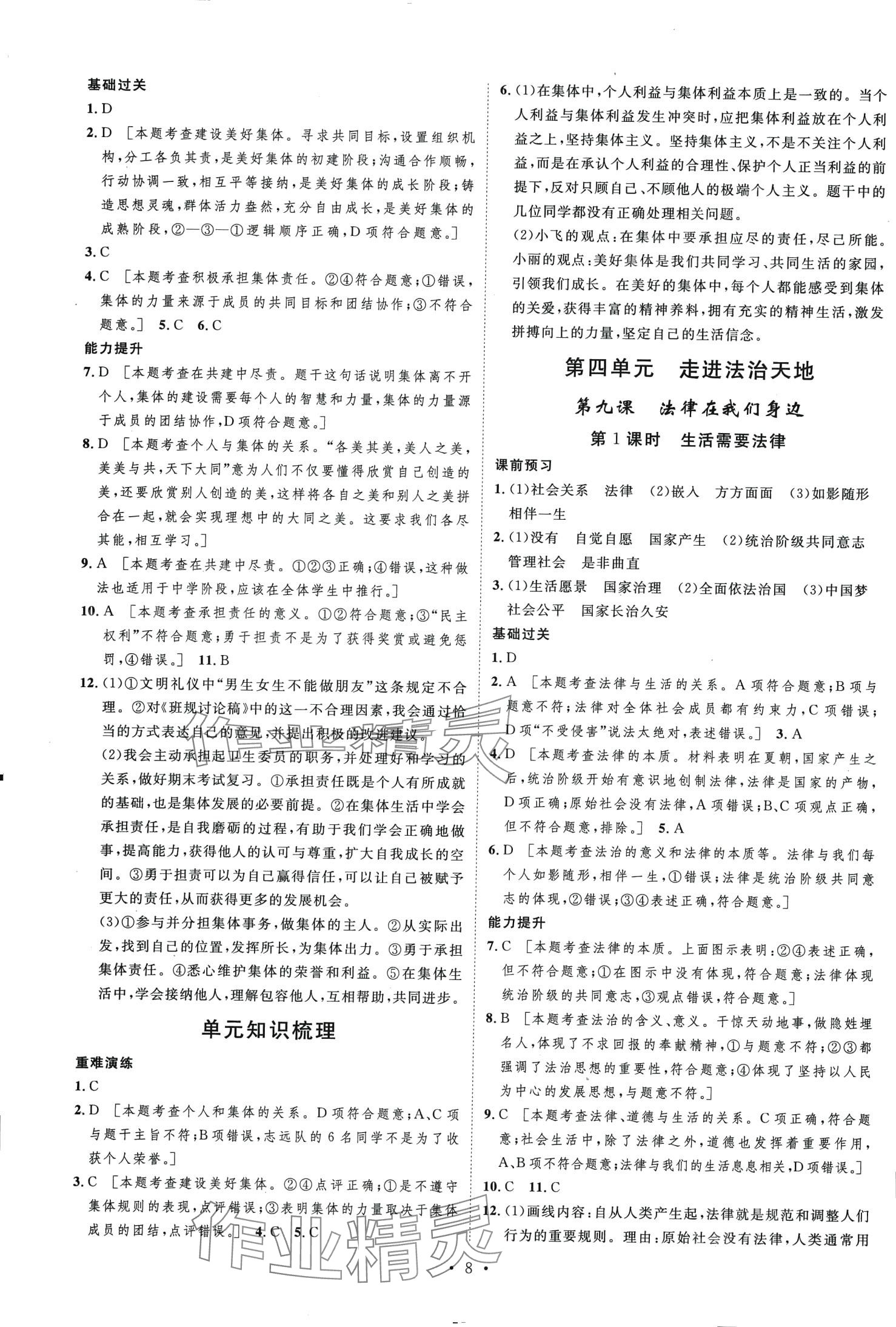 注:目前有些书本章节名称可能整理的还不是很完善,但都是按照顺序排列的,请同学们按照顺序仔细查找。练习册 2024年思路教练同步课时作业七年级道德与法治下册人教版 答案主要是用来给同学们做完题方便对答案用的,请勿直接抄袭。