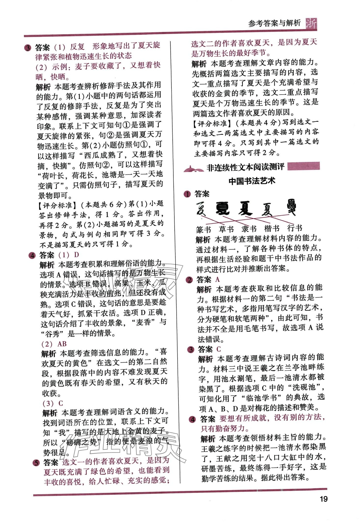 注:目前有些书本章节名称可能整理的还不是很完善,但都是按照顺序排列的,请同学们按照顺序仔细查找。练习册 2024年木头马阅读力测评六年级语文全一册人教版浙江专版 答案主要是用来给同学们做完题方便对答案用的,请勿直接抄袭。