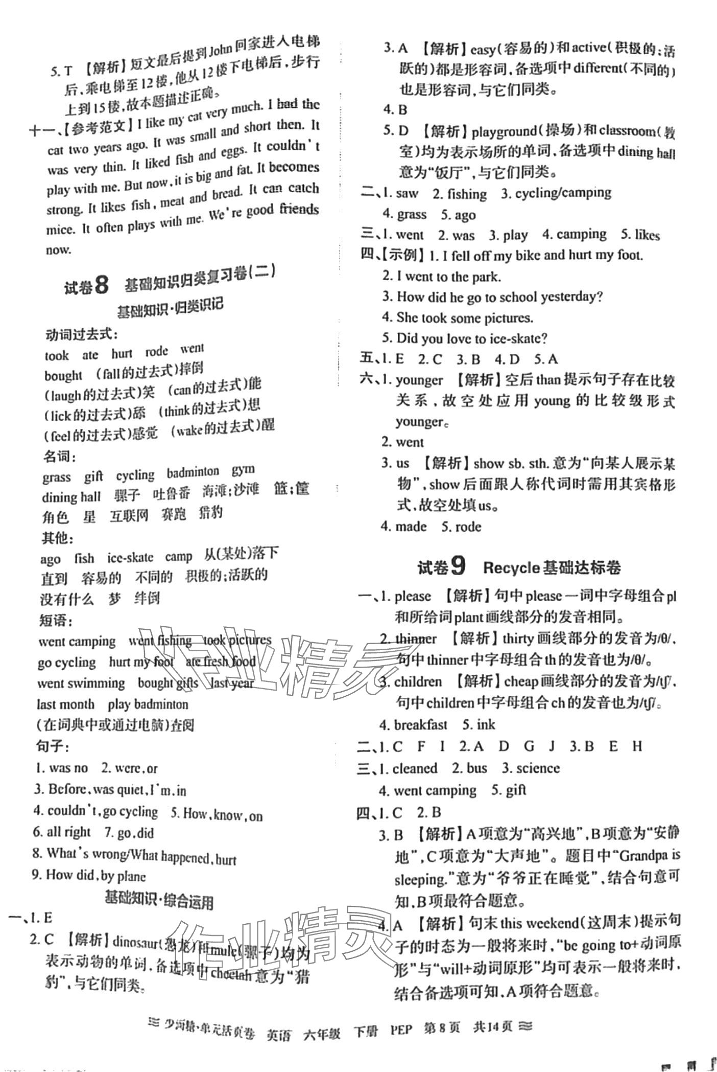 注:目前有些书本章节名称可能整理的还不是很完善,但都是按照顺序排列的,请同学们按照顺序仔细查找。练习册 2024年王朝霞单元活页卷六年级英语下册人教PEP版 答案主要是用来给同学们做完题方便对答案用的,请勿直接抄袭。