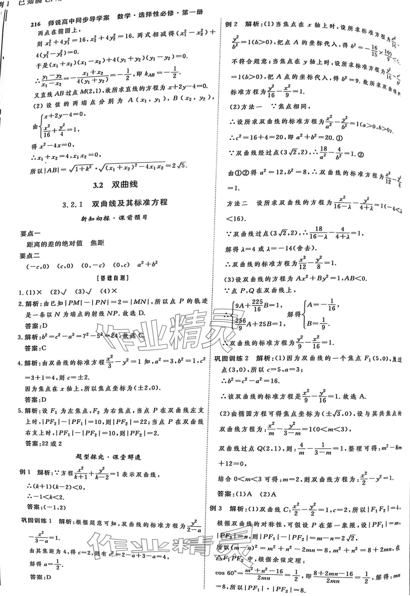 注:目前有些书本章节名称可能整理的还不是很完善,但都是按照顺序排列的,请同学们按照顺序仔细查找。练习册 2024年师说高中同步导学案数学选择性必修第一册 答案主要是用来给同学们做完题方便对答案用的,请勿直接抄袭。
