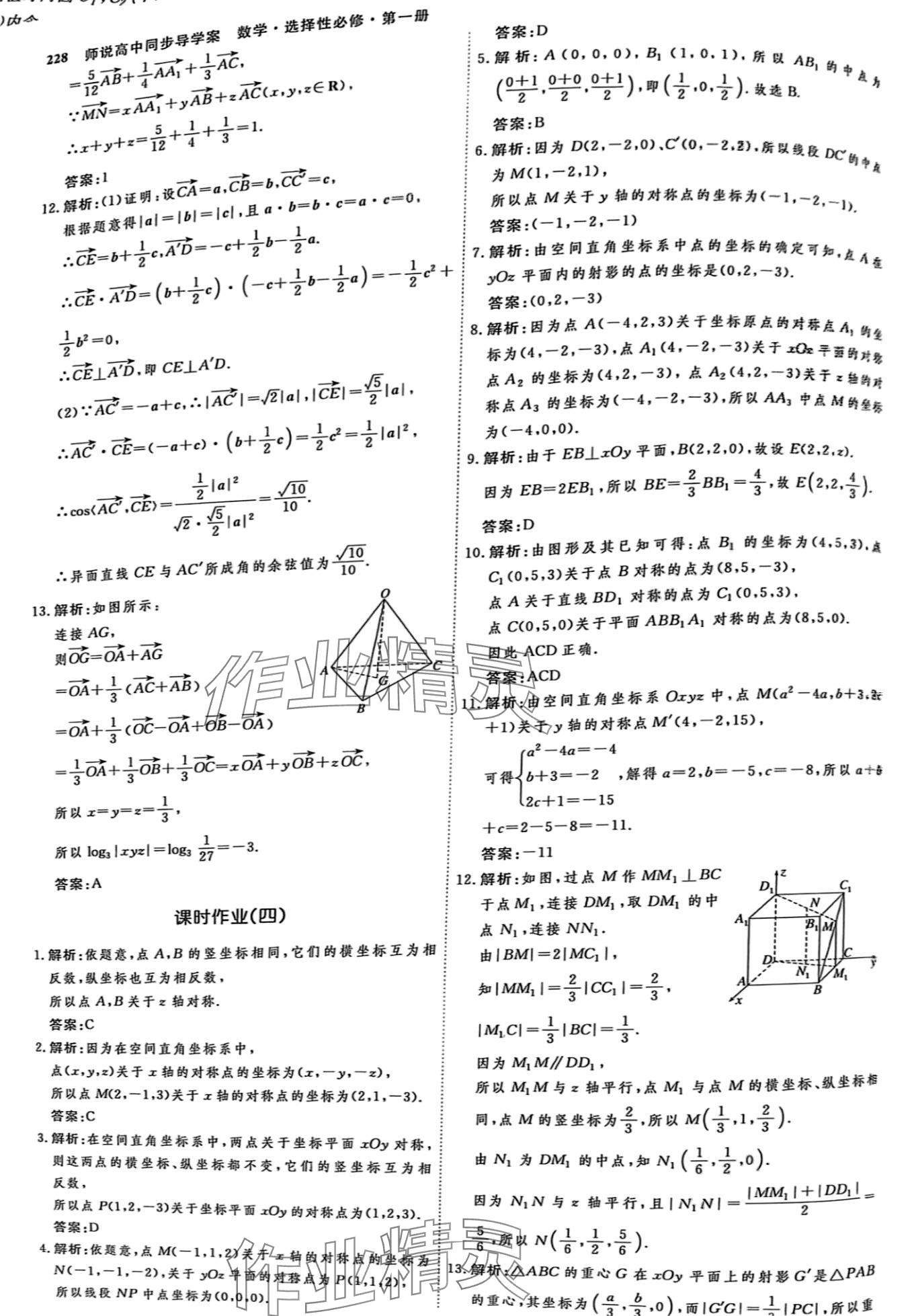 注:目前有些书本章节名称可能整理的还不是很完善,但都是按照顺序排列的,请同学们按照顺序仔细查找。练习册 2024年师说高中同步导学案数学选择性必修第一册 答案主要是用来给同学们做完题方便对答案用的,请勿直接抄袭。