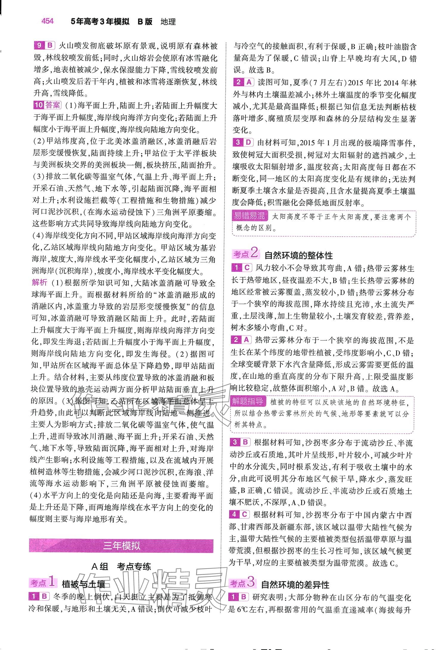 注:目前有些书本章节名称可能整理的还不是很完善,但都是按照顺序排列的,请同学们按照顺序仔细查找。练习册 2024年5年高考3年模拟高中地理全一册B版 答案主要是用来给同学们做完题方便对答案用的,请勿直接抄袭。