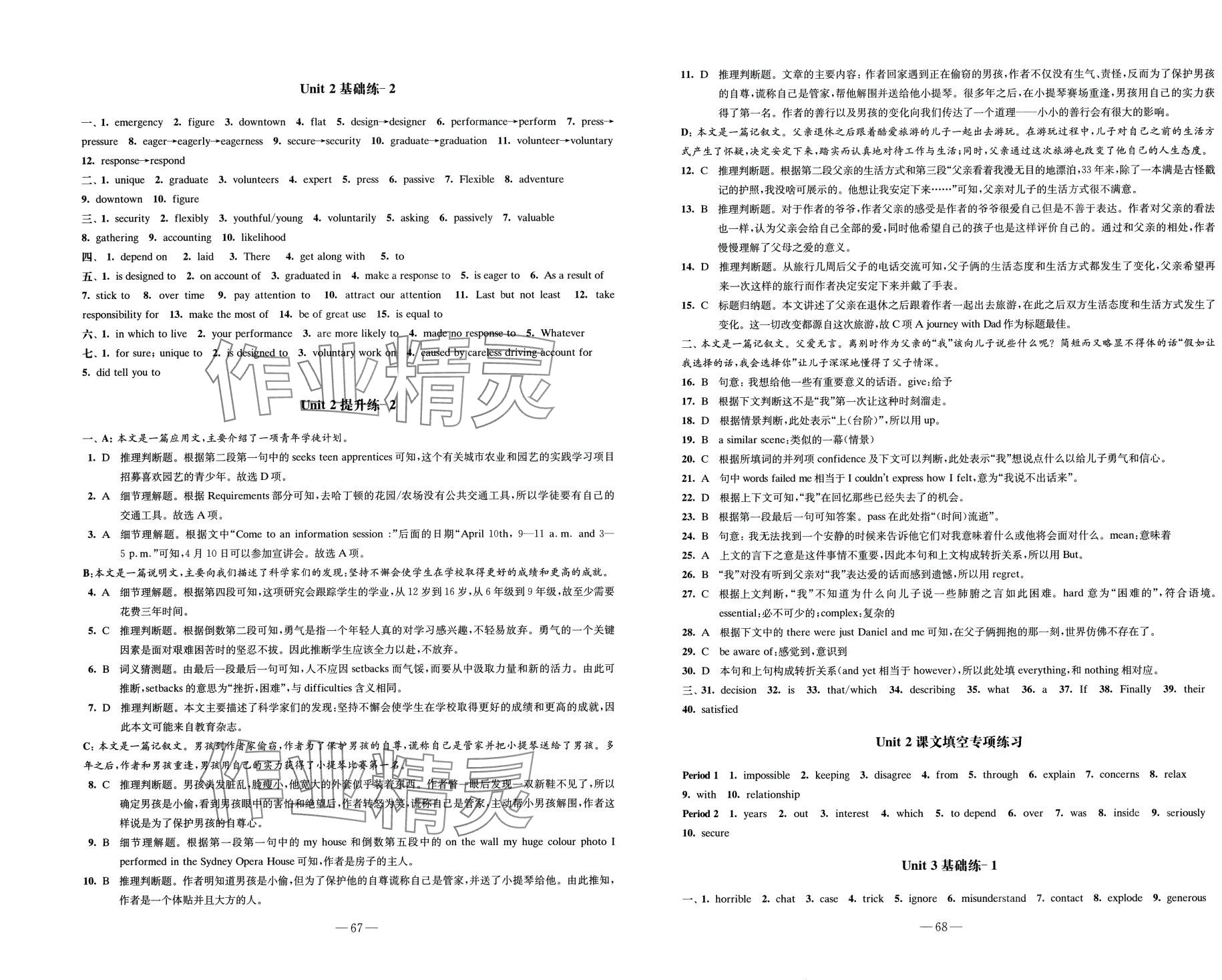 注:目前有些书本章节名称可能整理的还不是很完善,但都是按照顺序排列的,请同学们按照顺序仔细查找。练习册 2024年凤凰新学案高中英语必修第一册译林版 答案主要是用来给同学们做完题方便对答案用的,请勿直接抄袭。