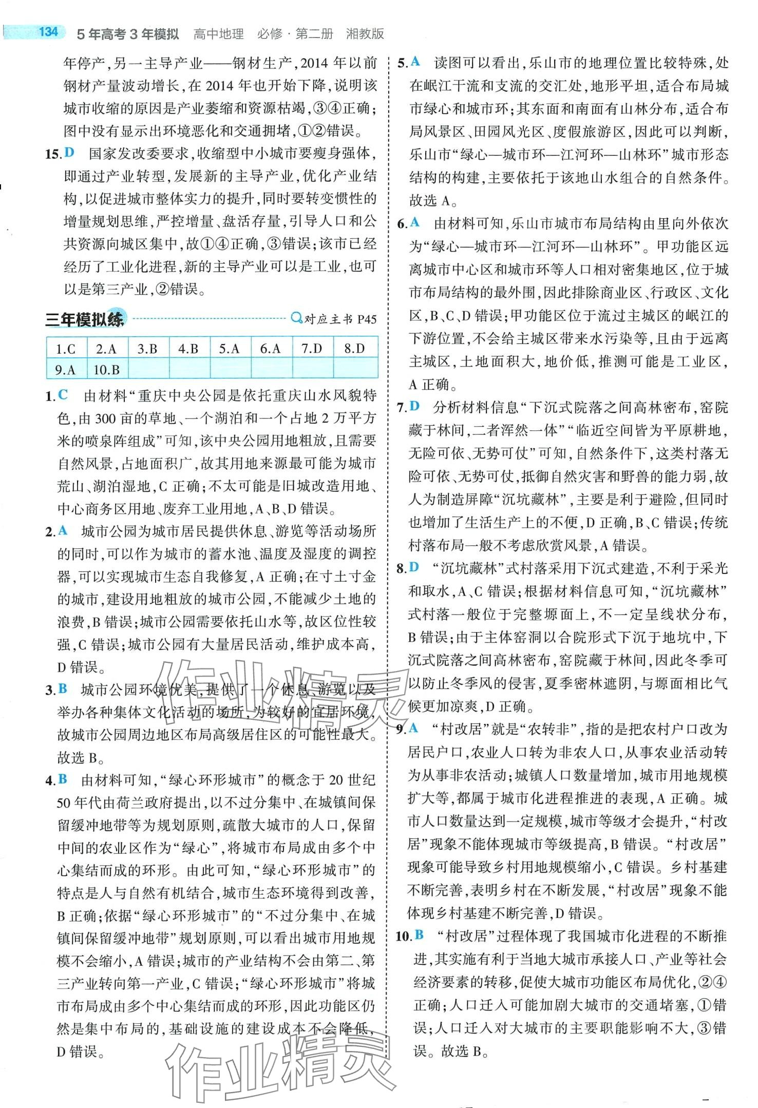 2024年5年高考3年模拟高中地理必修第二册湘教版