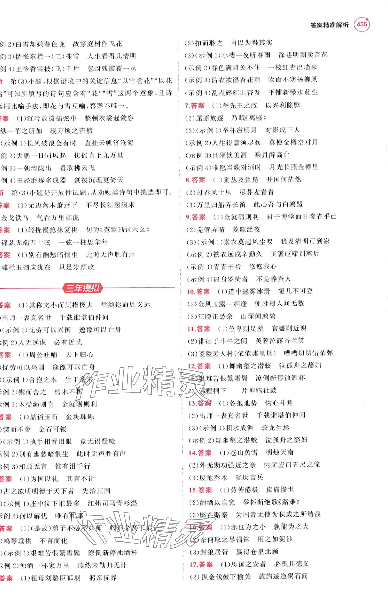 注:目前有些书本章节名称可能整理的还不是很完善,但都是按照顺序排列的,请同学们按照顺序仔细查找。练习册 2024年5年高考3年模拟高中语文红色基础版A版 答案主要是用来给同学们做完题方便对答案用的,请勿直接抄袭。