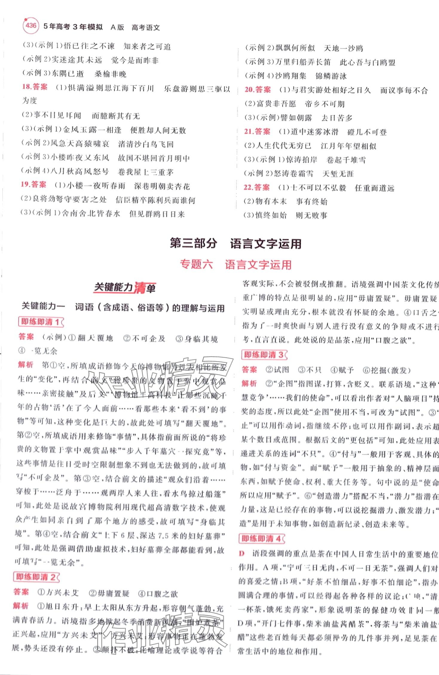 注:目前有些书本章节名称可能整理的还不是很完善,但都是按照顺序排列的,请同学们按照顺序仔细查找。练习册 2024年5年高考3年模拟高中语文红色基础版A版 答案主要是用来给同学们做完题方便对答案用的,请勿直接抄袭。