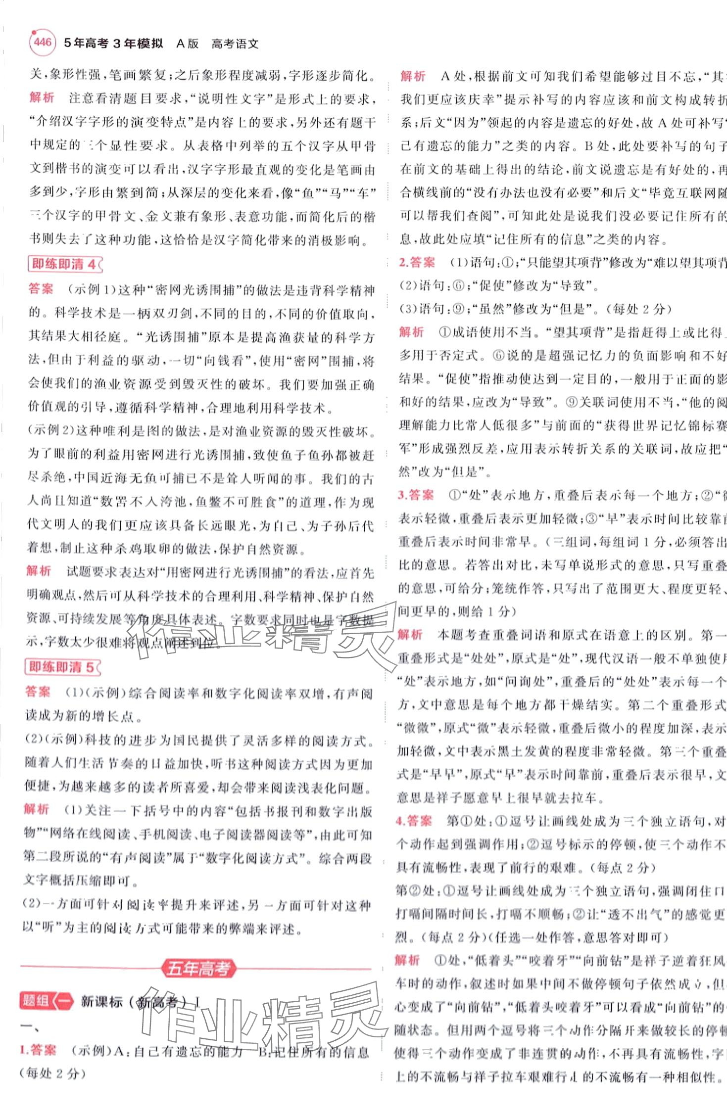 注:目前有些书本章节名称可能整理的还不是很完善,但都是按照顺序排列的,请同学们按照顺序仔细查找。练习册 2024年5年高考3年模拟高中语文红色基础版A版 答案主要是用来给同学们做完题方便对答案用的,请勿直接抄袭。
