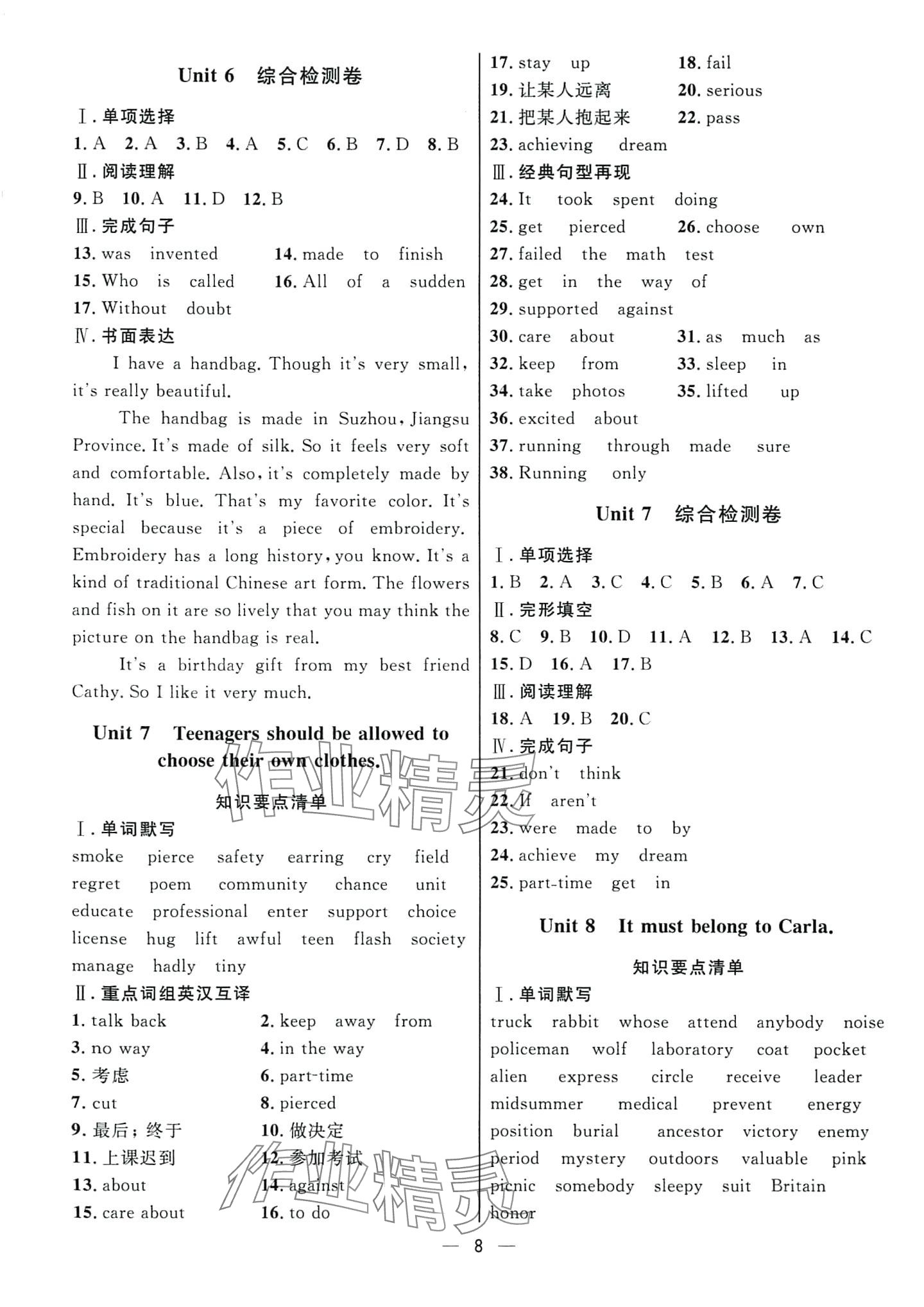 注:目前有些书本章节名称可能整理的还不是很完善,但都是按照顺序排列的,请同学们按照顺序仔细查找。练习册 2023年百所名校精点试题九年级英语全一册人教版 答案主要是用来给同学们做完题方便对答案用的,请勿直接抄袭。