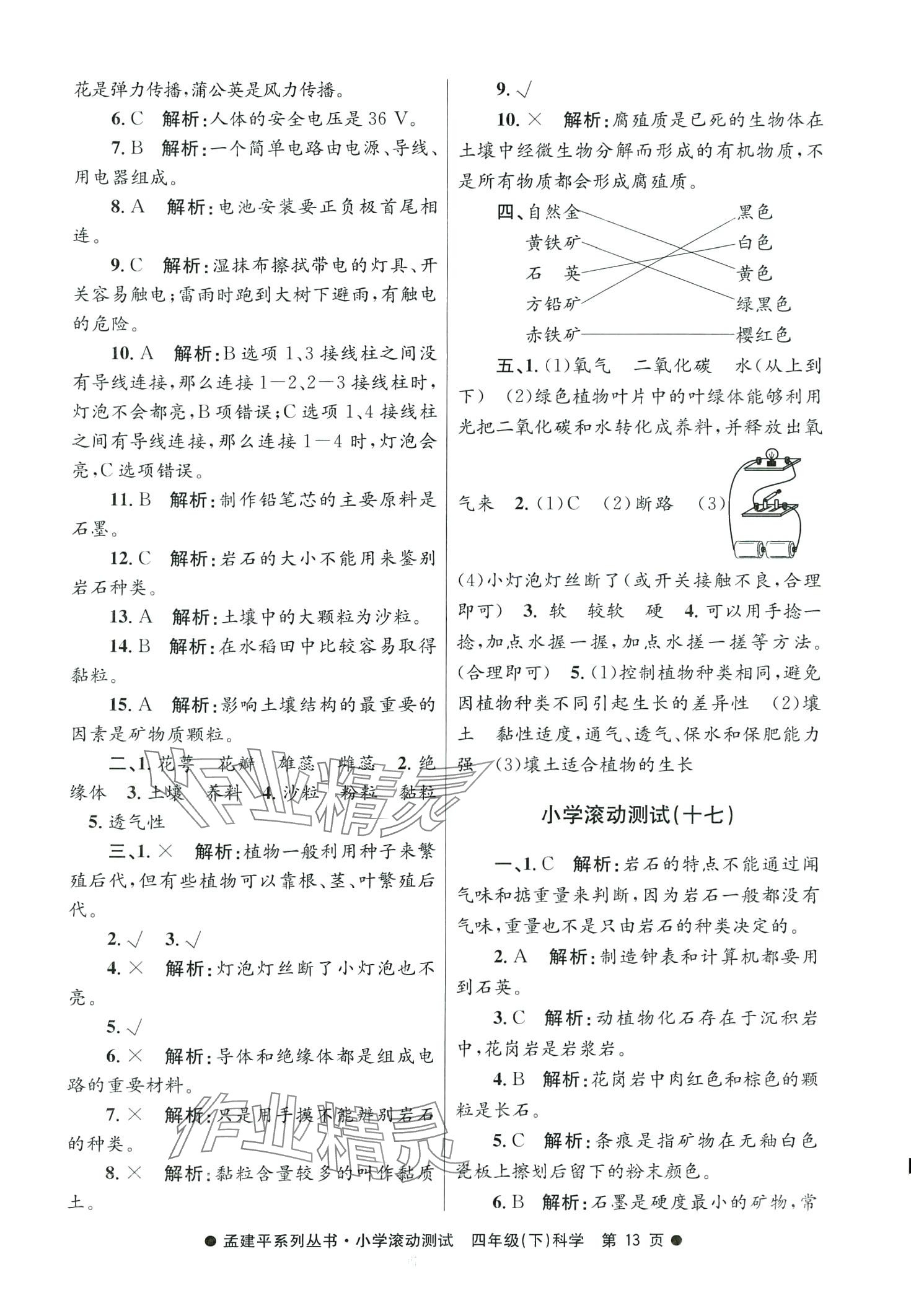 《2024年孟建平小学滚动测试四年级科学下册教科版》