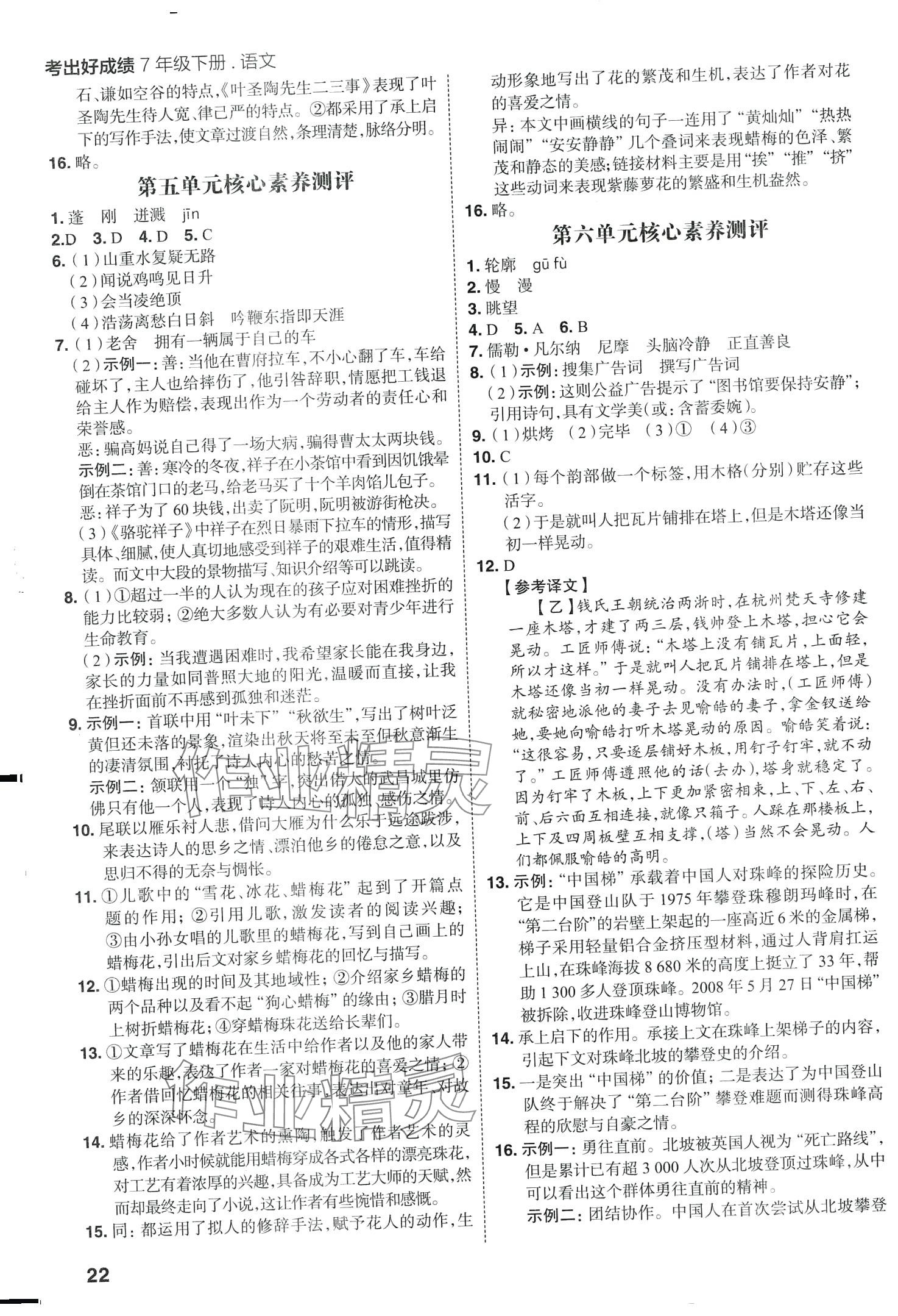 注:目前有些书本章节名称可能整理的还不是很完善,但都是按照顺序排列的,请同学们按照顺序仔细查找。练习册 2024年考出好成绩七年级语文下册人教版 答案主要是用来给同学们做完题方便对答案用的,请勿直接抄袭。