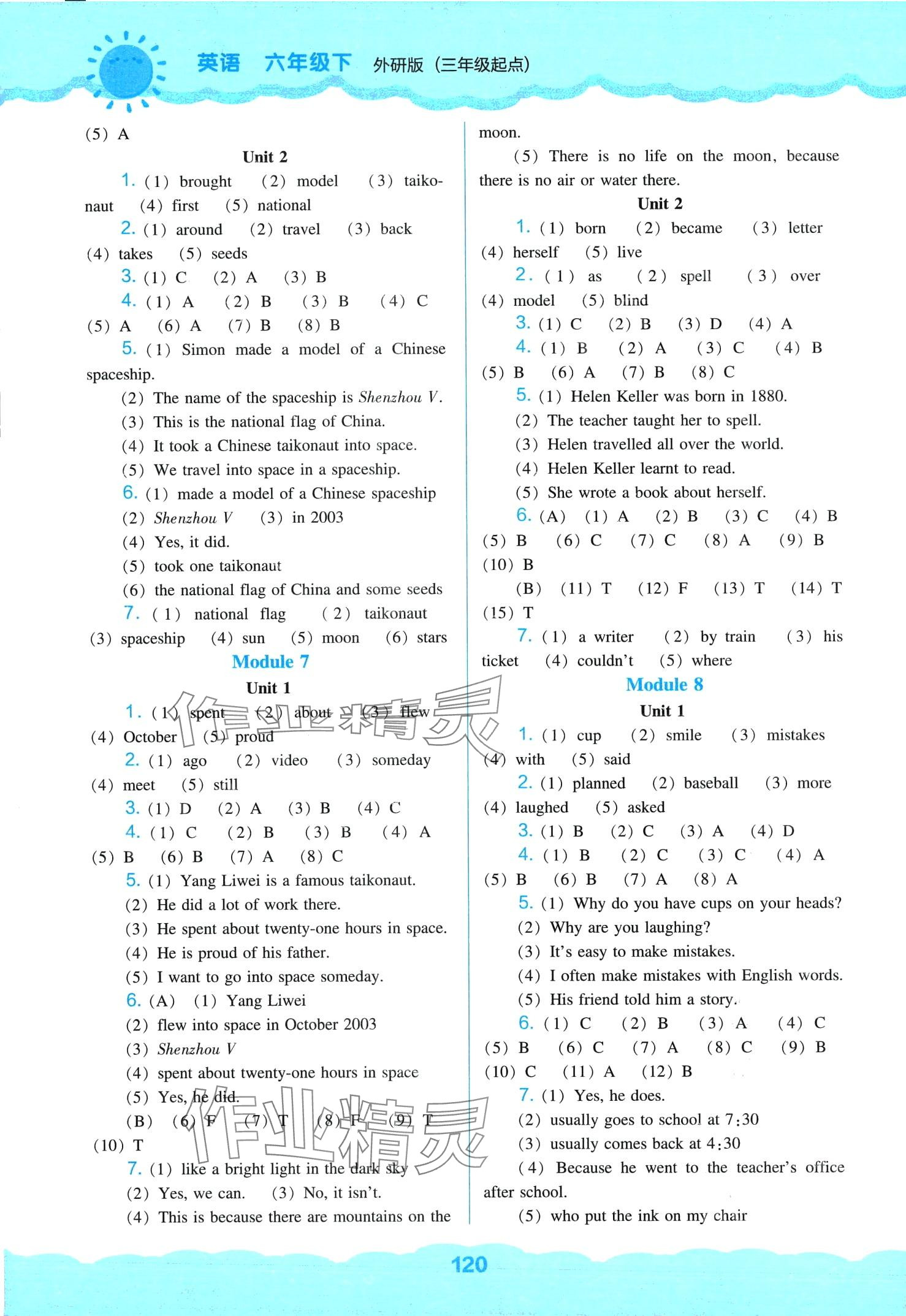 注:目前有些书本章节名称可能整理的还不是很完善,但都是按照顺序排列的,请同学们按照顺序仔细查找。练习册 2024年新课程能力培养六年级英语下册外研版 答案主要是用来给同学们做完题方便对答案用的,请勿直接抄袭。