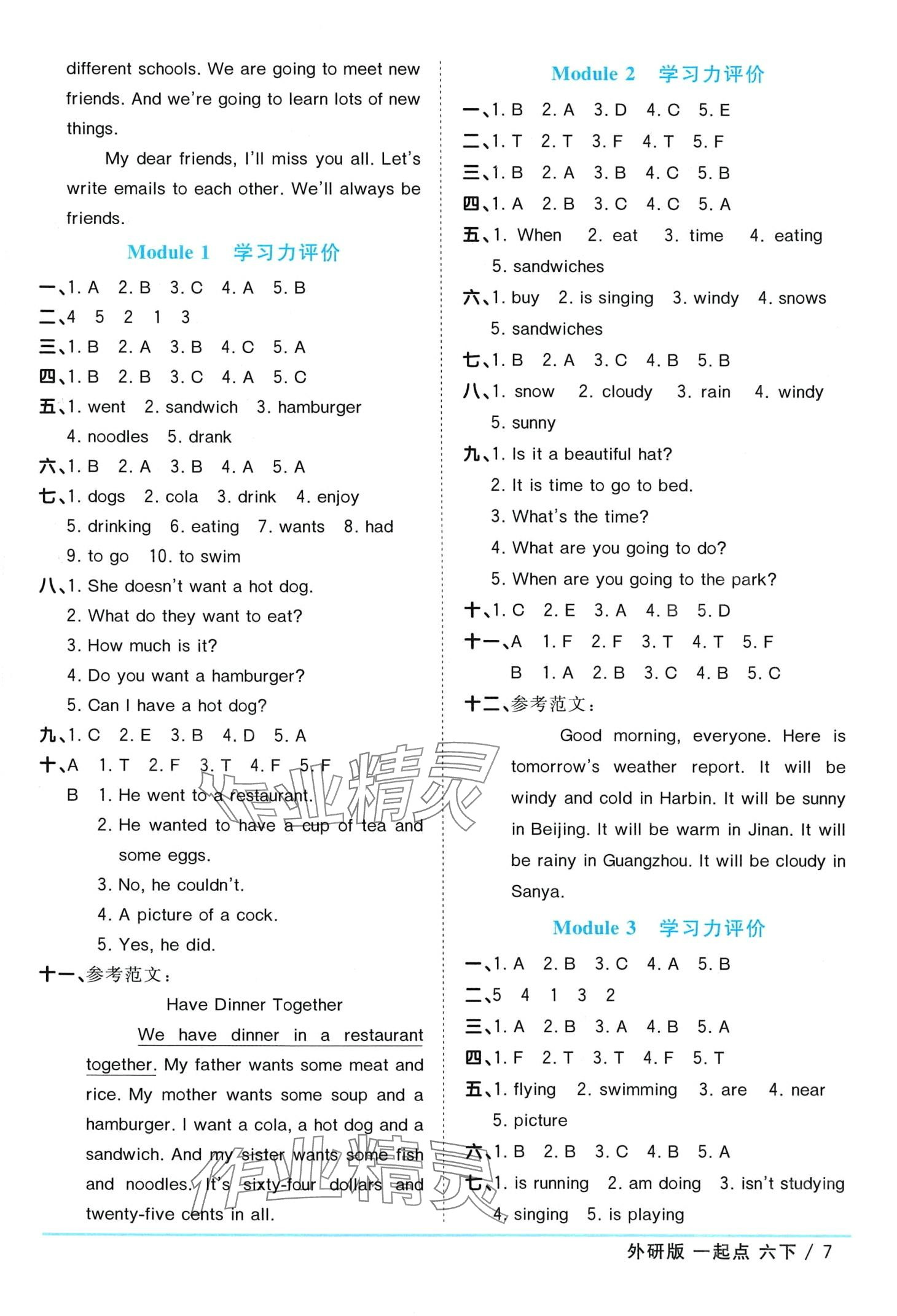 注:目前有些书本章节名称可能整理的还不是很完善,但都是按照顺序排列的,请同学们按照顺序仔细查找。练习册 2024年阳光同学课时优化作业六年级英语下册外研版一年级起 答案主要是用来给同学们做完题方便对答案用的,请勿直接抄袭。