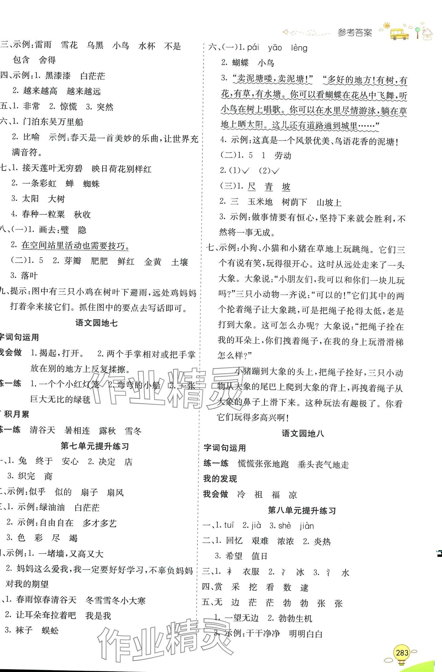 注:目前有些书本章节名称可能整理的还不是很完善,但都是按照顺序排列的,请同学们按照顺序仔细查找。练习册 2024年七彩课堂二年级语文下册人教版河南专版 答案主要是用来给同学们做完题方便对答案用的,请勿直接抄袭。