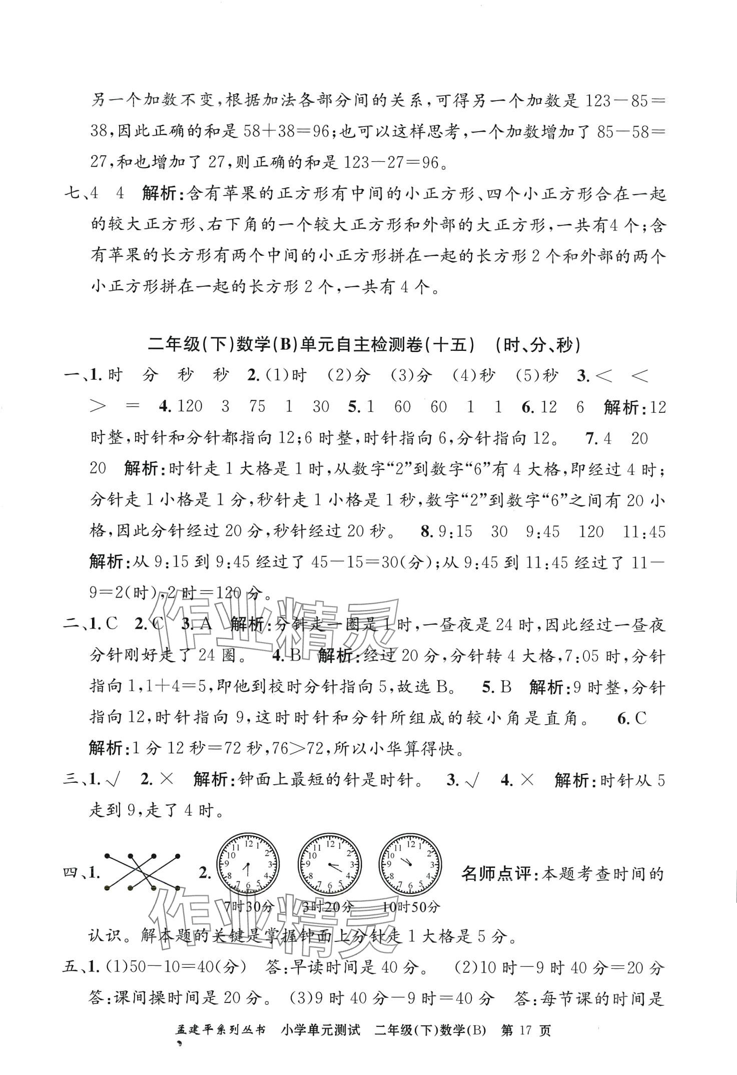 注:目前有些书本章节名称可能整理的还不是很完善,但都是按照顺序排列的,请同学们按照顺序仔细查找。练习册 2024年孟建平单元测试二年级数学下册北师大版 答案主要是用来给同学们做完题方便对答案用的,请勿直接抄袭。